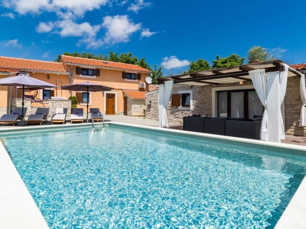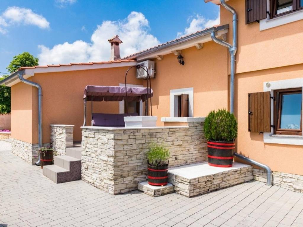 Na prodaju je prekrasna kuća za odmor u okolici Žminja. Smještaj je raspoređen u dva objekta, od kojih je jedan prizemni, a drugi na dvije etaže, te se nalaze u zajedničkom dvorištu. Prizemni objekt sastoji se od 2 spavaće sobe od kojih jedna ima i dječji krevetić, kuhinje s dnevnim boravkom i kupaonice. Dvokatni objekt sadrži 2 spavaće sobe sa dodatna 2 ležaja (fotelje na razvlačenje) , kuhinju s dnevnim boravkom i kupaonicu. Treći objekt – kućica kraj bazena(konoba) savršena za zajednička druženja, večere i opuštanje kraj bazena. Svi objekti su klimatizirani. Grijani bazen omogućava uživanje i u van ljetne sezone. Kuća se nalazi u uhodanom turističkom najmu. Više na upit.