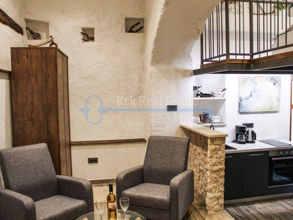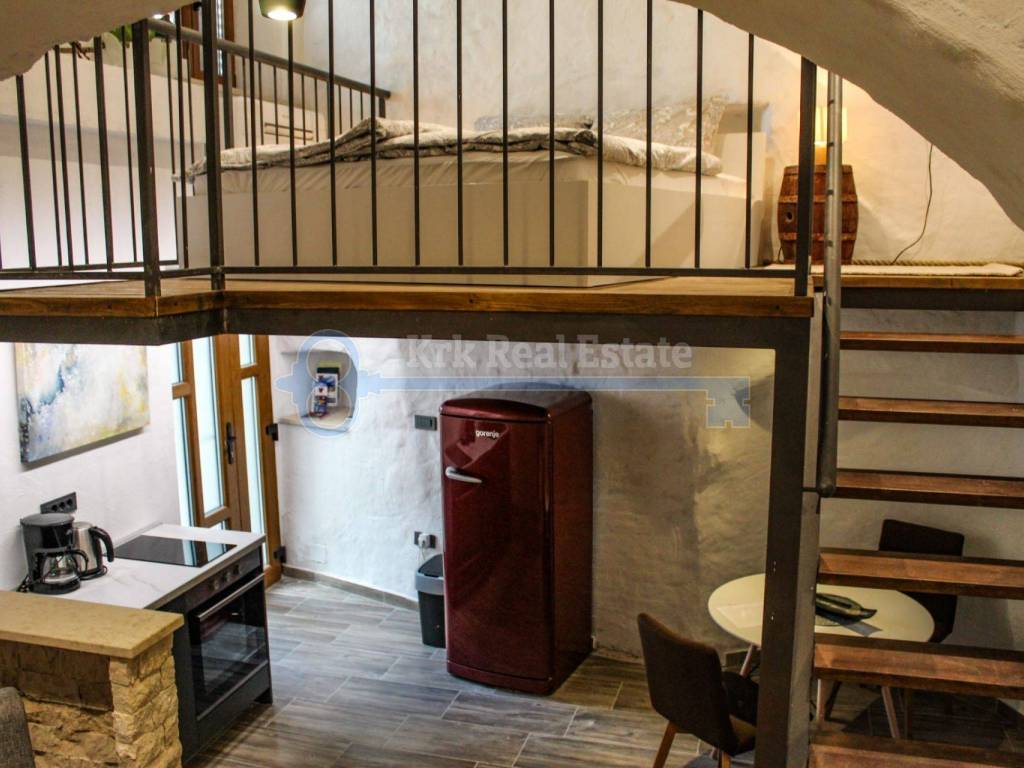 Na prodaju je jedinstven apartman stambene površine 29m2 te 8m2 površine galerije. Smješten je u staroj gradskoj jezgri, u mirnoj pješačkoj zoni, samo 30 metara udaljen od mora ,u blizini svih sadržaja. Apartman se sastoji od ulaznog prostora, kuhinje s blagovaonicom, prostranog dnevnog boravka, kupaonice te galerije na kojoj je smještena spavaća soba. Apartman je kompletno adaptiran i novonamješten.