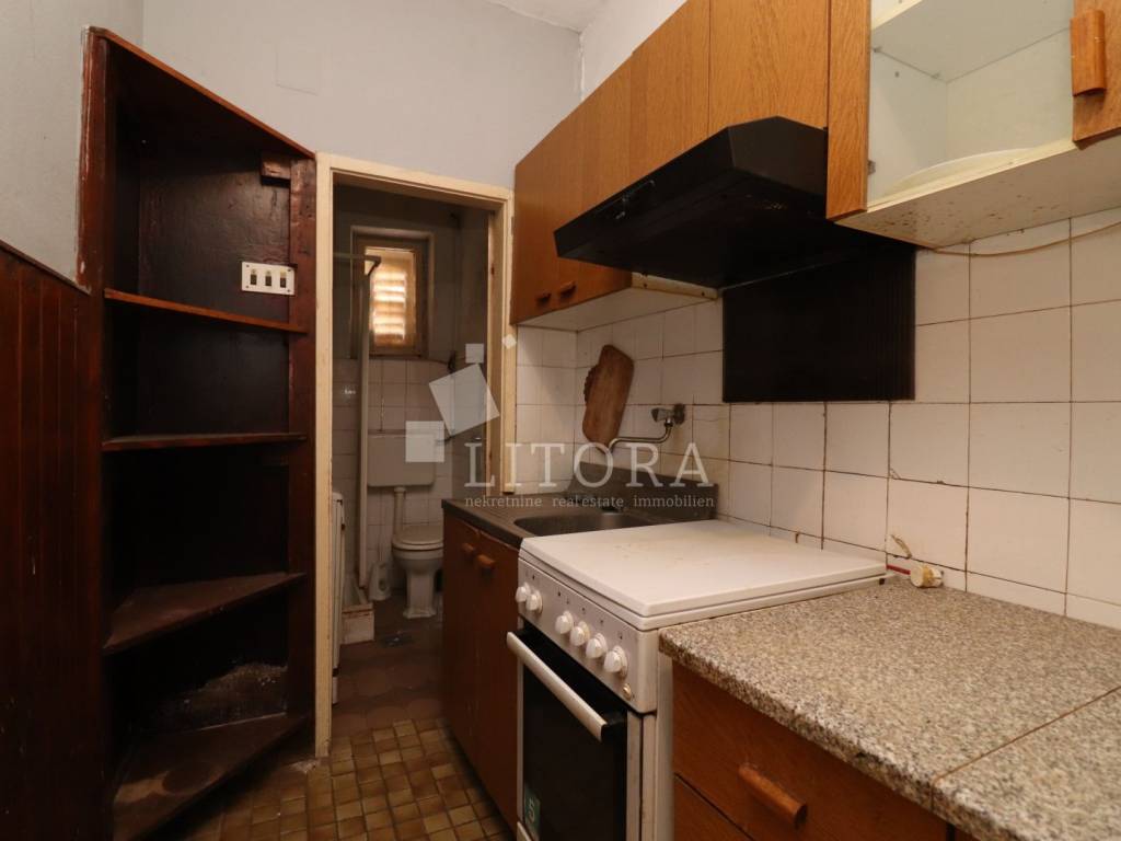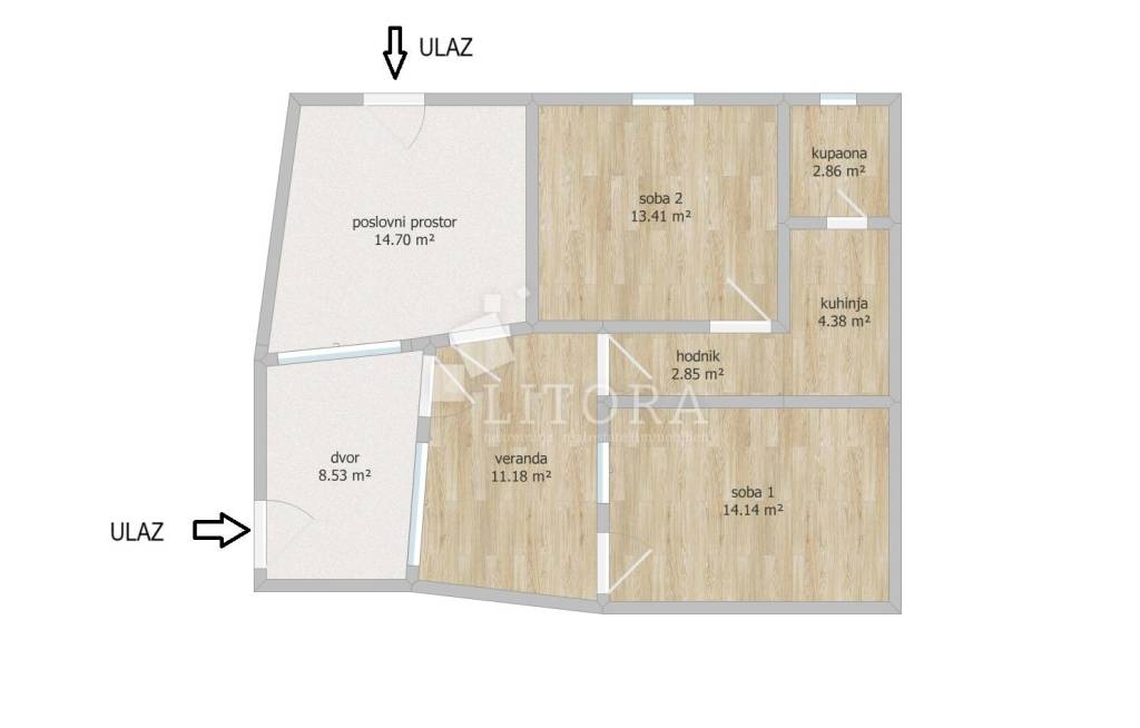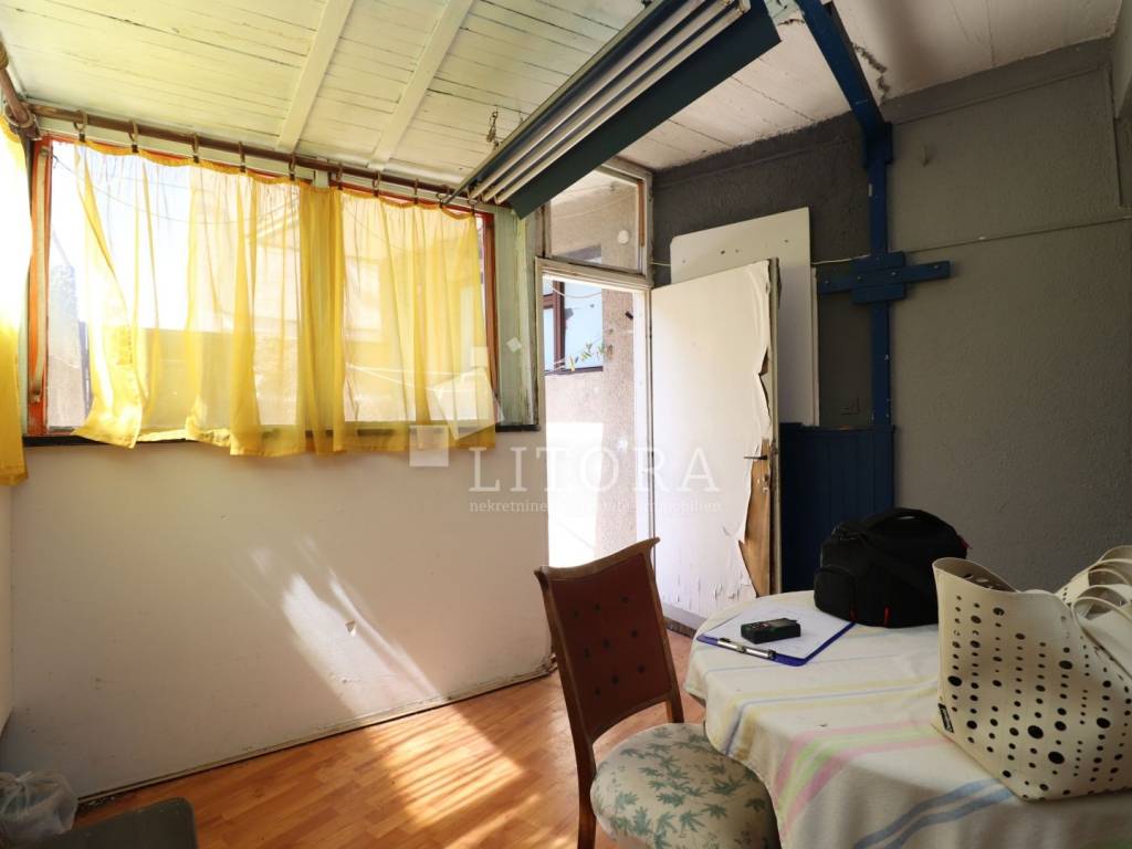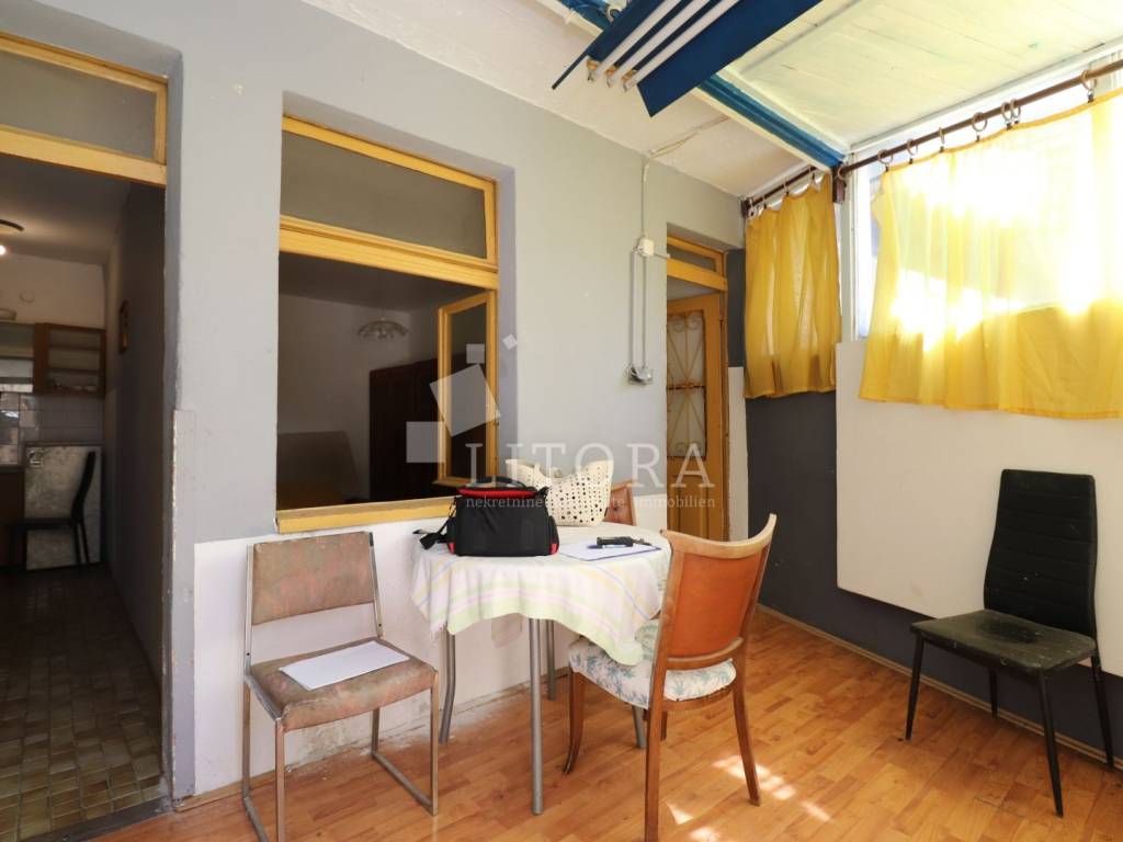Stambeno-poslovni prostor u prizemlju, ukupne korisne površine 63,52 m². U naravi se radi o stanu površine 48,82 m², koji se sastoji od hodnika, dvije sobe, kupaonice, kuhinje i verande. Ispred je ograđeno dvorište površine 8,53 m². Poslovni prostor površine 14,70 m² je jedna prostorija i ima zaseban ulaz. Stambeni dio i poslovni prostor mogu se objediniti i koristiti kao jedinstvena cjelina. Nekretnina nije useljiva i zahtijeva kompletnu adaptaciju. Dostupna je kompletna infrastruktura te prilaz automobilom. Parkiranje je moguće na javnoj gradskoj površini. Zbog svoje pozicije, prostor je idealan za dugoročni najam ili turističke svrhe. Udaljenost od mora iznosi 230 m, od plaže Banj 500 m, a od centra grada 700 m.