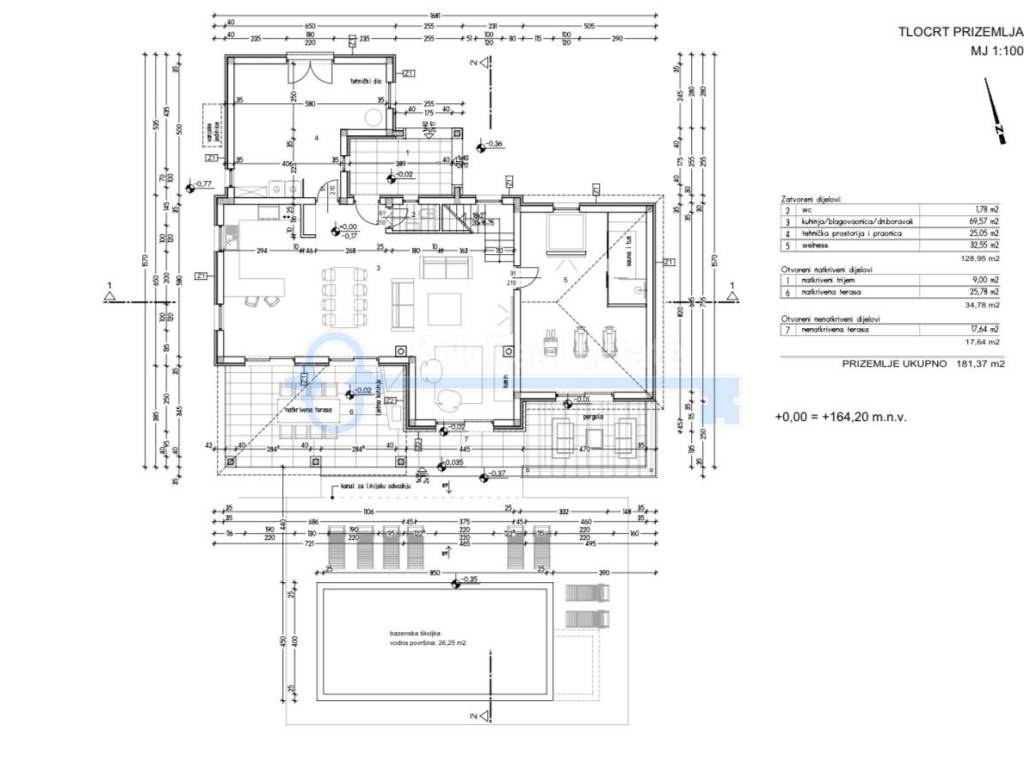 Na prodaju je uređeno građevinsko zemljište površine 1710 m² s gradjevinskom dozvolom za izgradnju kuće s bazenom, smješteno u mirnom dijelu naselja Marčana, nedaleko od Pule. Zemljište ima uređen pristup s glavne ceste, kao i dodatni put koji ide po boku terena i koji ga razdvaja od susjedne parcele, koji se može koristiti kao alternativni prilaz. Na ulazu u parcelu nalaze se svi potrebni priključci – voda, struja i kanalizacija. Iza građevinskog zemljišta nalazi se dodatnih 2810,5 m² poljoprivrednog zemljišta, koje pruža dodatnu privatnost i mogućnosti korištenja. U okolici su trgovine, restorani i plaže, što ovo čini idealnom lokacijom za luksuzni dom u mirnom okruženju. Zemljište posjeduje sve potrebne papire.