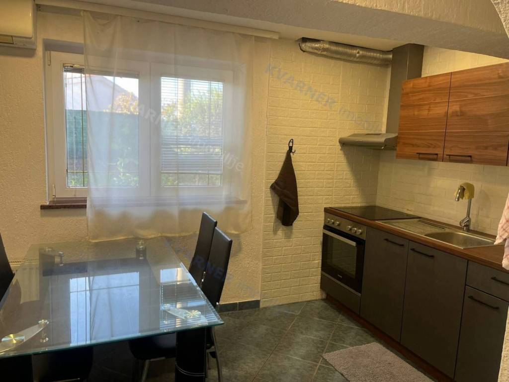 U suterenu se nalazi potpuno opremljen i useljiv stan koji uključuje dvije spavaće sobe, dnevni boravak s kuhinjom i blagovaonicom, kupaonicu te dodatnu prostoriju koja trenutno služi kao radna soba. Stan je klimatiziran i ima centralno grijanje na plin, što osigurava komfor tijekom cijele godine. Pored stana nalazi se i funkcionalna pomoćna prostorija koja može poslužiti kao vešeraj ili spremište.