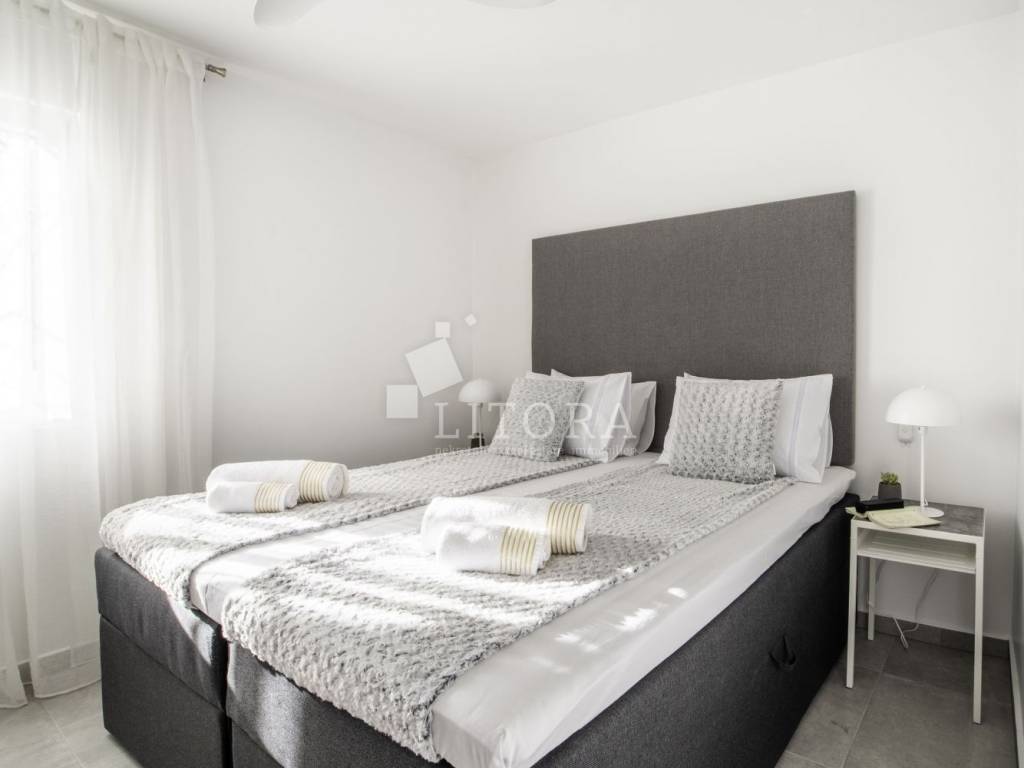 Rogoznica – širi centar, objekt s tri stambene jedinice, 100 m od mora. Stambeni objekt smješten u širem centru Rogoznice s prekrasnim pogledom na more, udaljen svega 100 metara od obale. Zgrada se sastoji od tri stambene jedinice, a svaki stan je klimatiziran, u potpunosti namješten i ima osigurano vlastito parkirno mjesto, što ovu nekretninu čini izvrsnom prilikom kako za osobne potrebe, tako i za turistički najam. Apartman S2 smješten je u prizemnoj etaži i raspolaže ukupnom korisnom površinom od 73,72 m². Orijentiran je prema jugu, sastoji se od dnevnog boravka s kuhinjom i blagovaonicom te izlaza na veliku terasu sa predivnim pogledom na more, dvije spavaće sobe i kupaonice. Stanu dodatno pripada jedno parkirno mjesto. Posebnost ove stambene jedinice je zaseban ulaz što pruža privatnost, mir i osjećaj intimnog mediteranskog kutka. Zahvaljujući izvrsnoj lokaciji, svega nekoliko minuta hoda do mora i blizine svih potrebnih sadržaja, stan predstavlja idealan izbor za ugodan obiteljski život, odmor ili kao atraktivna investicija u turizam.