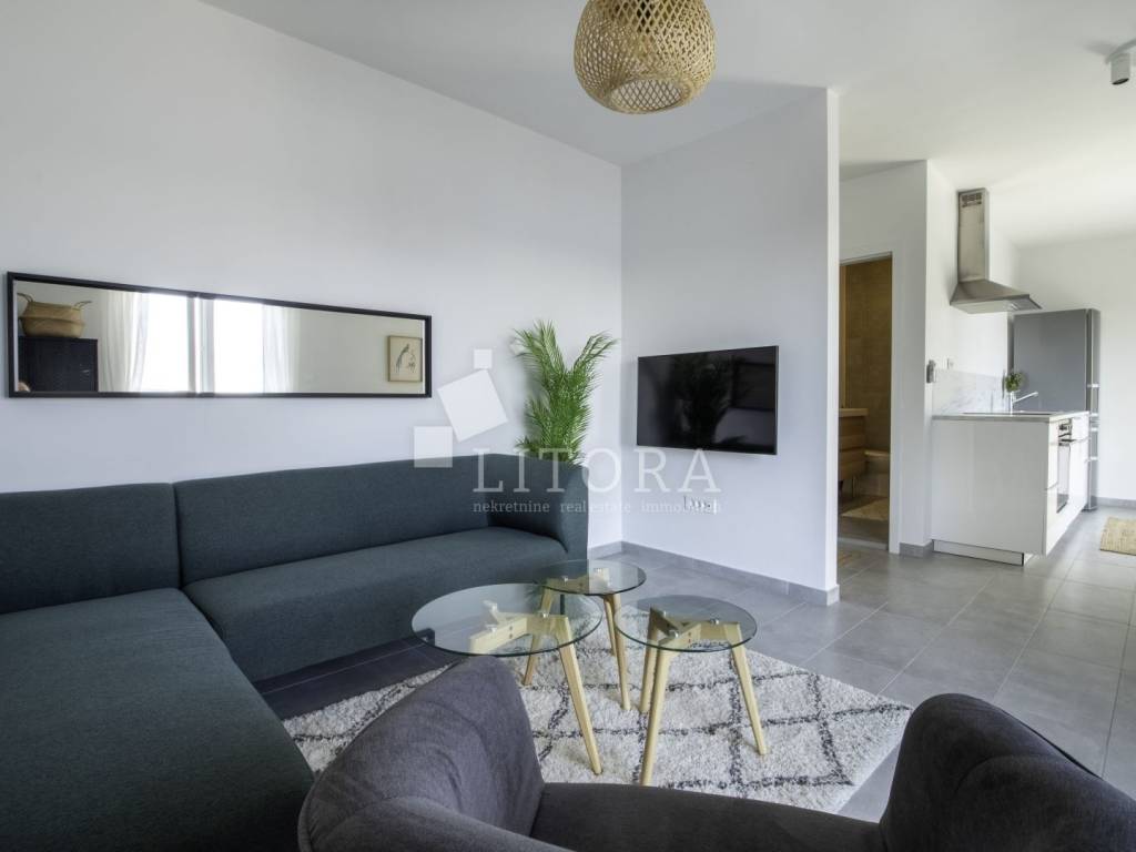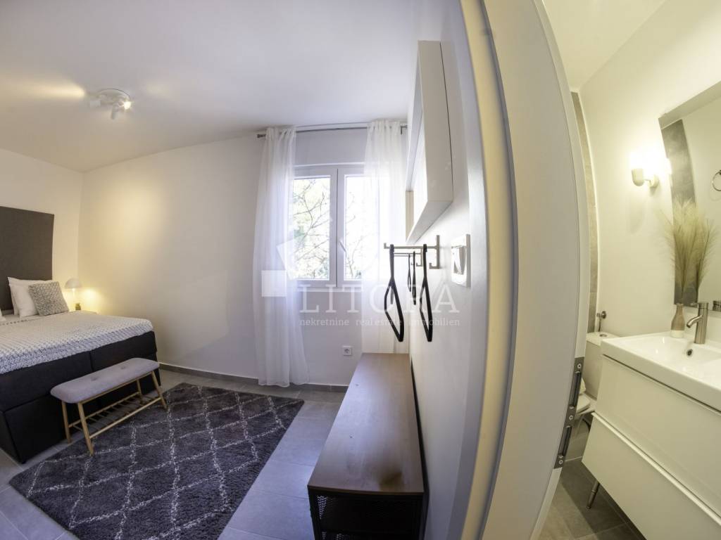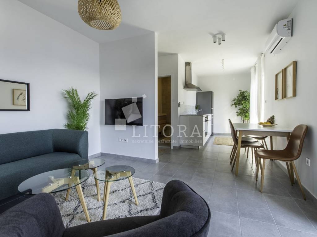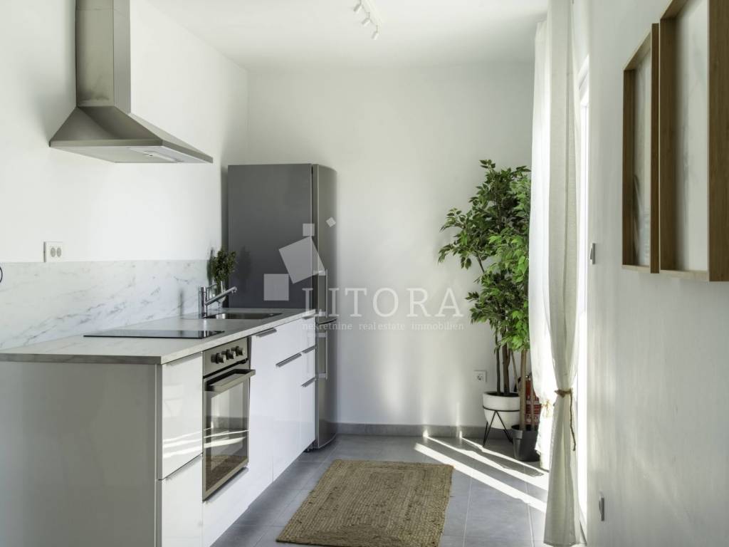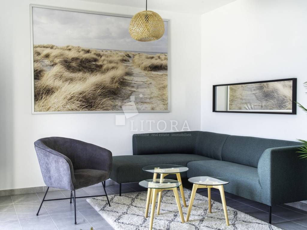 Rogoznica, širi centar nalazi se 2-soban apartman sa panoramskim pogledom na more. Zgrada se sastoji od tri stambene jedinice, a svaka je klimatizirana, potpuno namještena i ima osigurano vlastito parkirno mjesto, što ovu nekretninu čini izvrsnim izborom kako za osobne potrebe, tako i kao investiciju u turistički najam. Stambena jedinica S3 nalazi se na prvom katu objekta, ima poseban ulaz i ukupnu korisnu površinu od 82,20 m². Orijentirana je prema jugu te se sastoji od dnevnog boravka s kuhinjom i blagovaonicom, dvije spavaće sobe i dvije kupaonice. Posebnu vrijednost stanu daje prostrana nenatkrivena terasa od 31,80 m² s panoramskim pogledom na more. Stanu pripada i ostava od 12,05 m². Uz navedeno, vlasniku stana pripada isključivo pravo korištenja fitness prostora (GYM) u prizemlju te krovne terase s prekrasnim pogledom na cijelu Rogoznicu i more. Lokacija je odlična – svega 100 metara od mora i 150 metara od centra mjesta, a blizina svih sadržaja potrebnih za svakodnevni život jamči udobnost i praktičnost. Zahvaljujući zasebnom ulazu, stan pruža mir, privatnost i osjećaj intimnog mediteranskog kutka, dok atraktivna lokacija i dodatni sadržaji čine ovu nekretninu idealnim izborom za ugodan obiteljski život, bezbrižan odmor ili kao sigurno ulaganje u turizam.