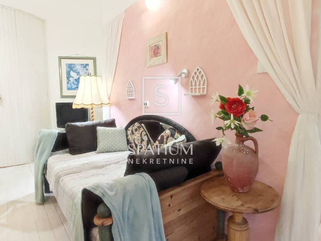 Stanovi se nalaze na mirnoj lokaciji, blizu svih sadržaja i centra, 450 m od mora. Iznajmljuju se kompletno namješteni i uređeni u osebujnom umjetničkom stilu. Okruženi zelenilom i karakterističnim primorskim vrtom, pogodni su za stanovanje ili za povremeno opuštanje u ovoj atraktivnoj turističkoj destinaciji. Moguć je najam samo jednog stana zasebno. Režije nisu uključene u cijenu najma.
