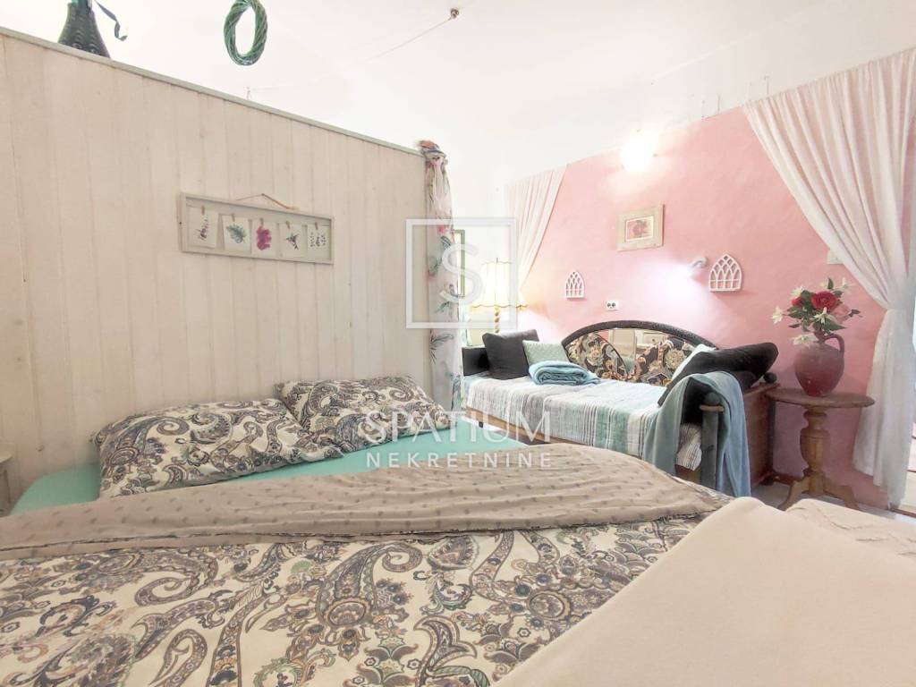 Drugi stan, površine 57 m2, sastoji se od ulaznog prostora, kuhinje sa blagovaonom i dnevnim boravkom, spavaće sobe, kupaone sa WC-om i također mu pripada dio kamenom popločanog dvorišta. Idealan je za dvije osobe ili obitelj sa djetetom.