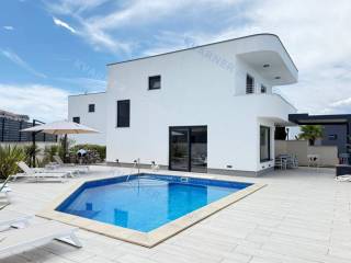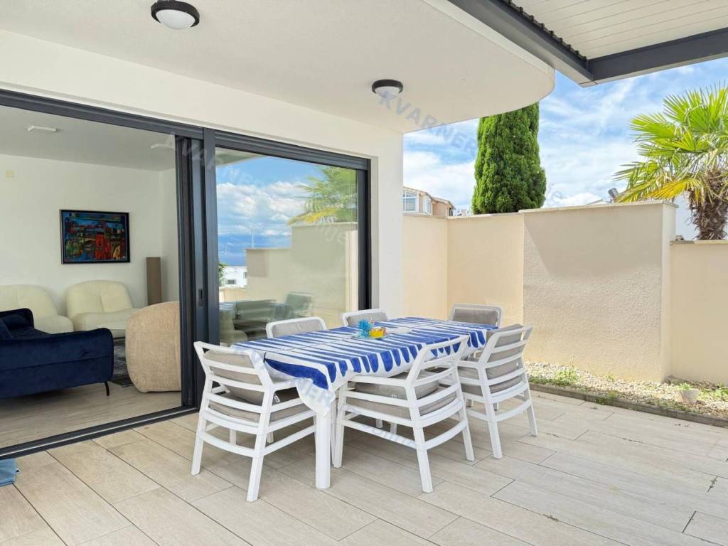 Na prodaju je moderna i luksuzno opremljena dvojna kuća u Malinskoj, smještena na izuzetnoj lokaciji samo 150 metara od mora i uređene šetnice. Ova atraktivna nekretnina na otoku Krku savršena je za obiteljski život ili kao investicija za turistički najam, zahvaljujući svojoj kvalitetnoj gradnji, vrhunskoj opremi i neposrednoj blizini plaže.