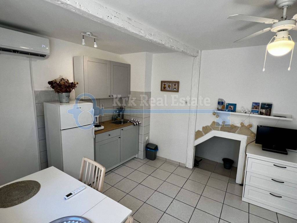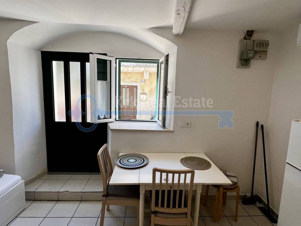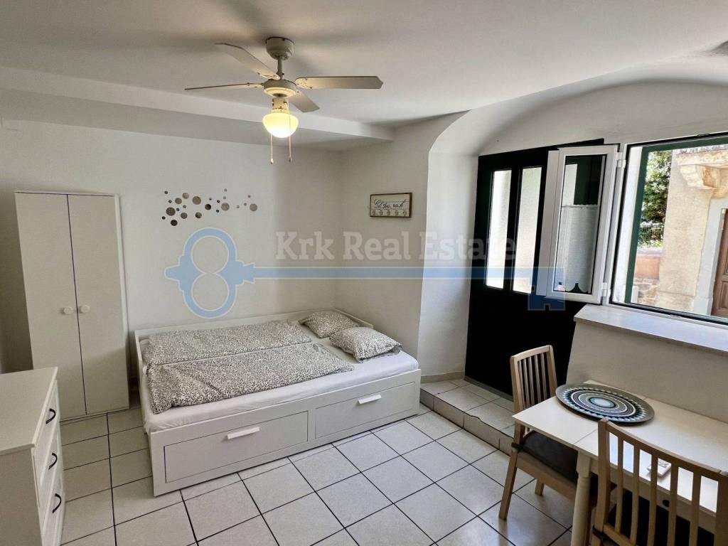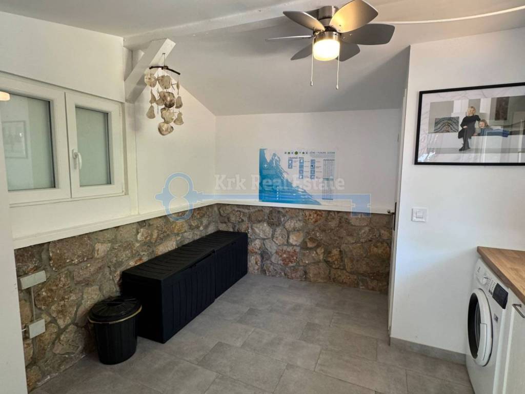 Na prodaju je renovirana kamena kuća stambene površine od 100 m2, spremna za iznajmljivanje. Sastoji se od prizemlja, prvog kata, drugog kata i visokog potkrovlja. U prizemlju se nalazi studio apartman. Na prvom katu se nalazi kuhinja, blagovaonica i kupaonica, na drugom katu i visokom potkrovlju se nalazi po jedna spavaća soba. Pripada joj okućnica površine 15 m2 na kojoj se nalazi dodatni objekt, vrtna kućica, u naravi studio površine 15 m2 potpuno opremljen za boravak. Nalazi se na mirnoj lokaciji, u staroj jezgri, udaljena od mora samo 280 metara.