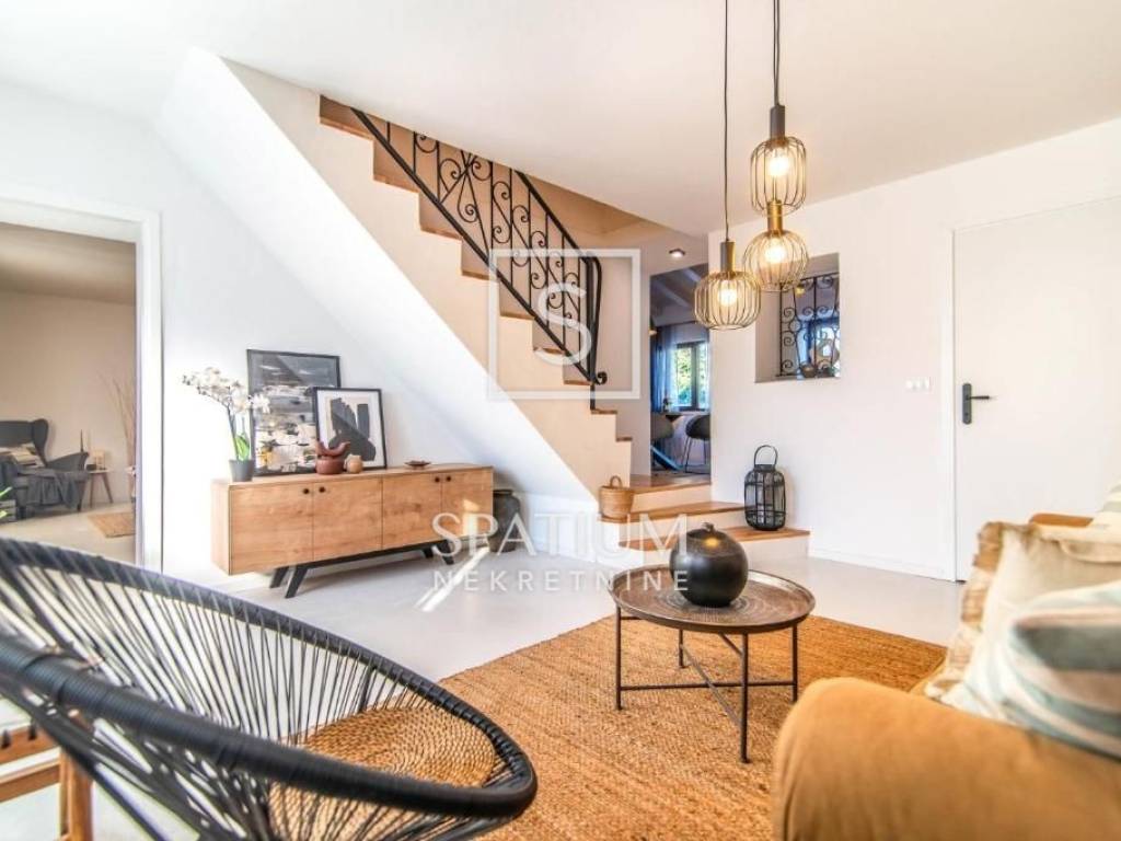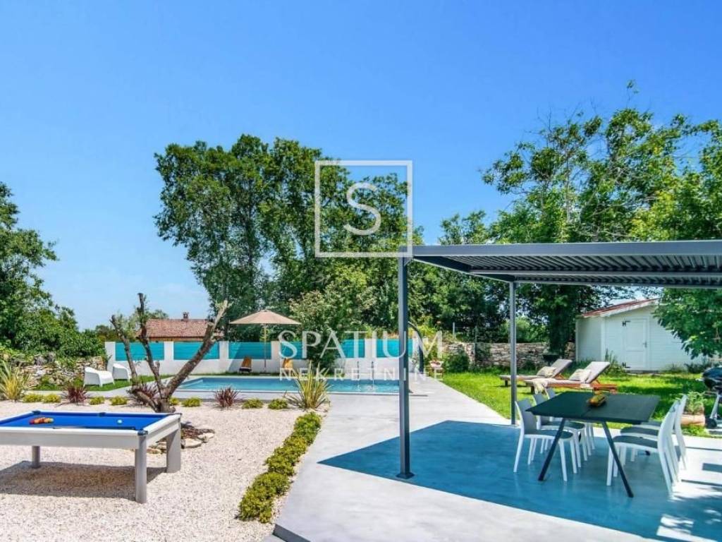 BUTKOVIĆI, SVETVINČENAT, u ponudu smo dobili potpuno renoviranu istarsku kuću površine 117 m2, smještenu nedaleko grada. Sastoji se od moderno uređene kuhinje, prostrane blagovaonice, udobnog dnevnog boravka, tri elegantne spavaće sobe, a svaka sadrži tri kupaonice. Sobe su opremljene klima uređajima i podnim grijanjem za maksimalnu udobnost. Na okućnici se nalazi bazen površine 30 m2 s nadstrešnicom od 12 m2, idealnom za opuštanje. Iza kuće prostire se dvorište od 500 m2, koje uključuje vrtnu kućicu. Objekt pruža sve što je potrebno za miran i udoban život, a ujedno je i odlična prilika za bavljenje turističkom djelatnošću s obzirom na već uhodani biznis u srcu Istre.