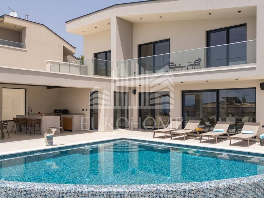 Prizemlje nudi jednu prostranu spavaću sobu s vlastitom kupaonicom, dok je dnevni boravak s otvorenom kuhinjom i blagovaonicom direktno povezan s natkrivenom terasom. Na njoj se nalazi bazen te vanjska ljetna kuhinja s roštiljem – idealna za opuštena druženja s obitelji i prijateljima.