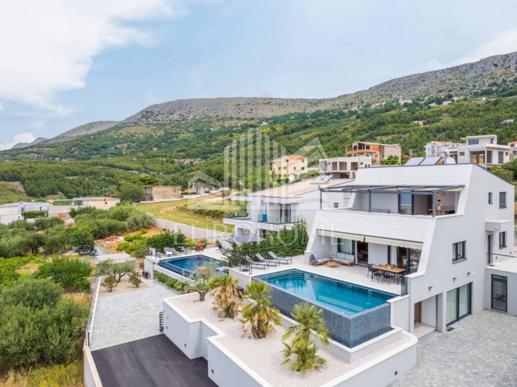 Prodaje se Vila modernog dizajna s bazenom, izgrađena prema visokim standardima kvalitete gradnje i opreme, smještena je na blagoj uzvisini u Podstrani te nudi prekrasan panoramski pogled na more.