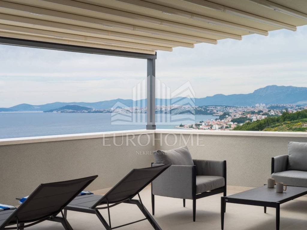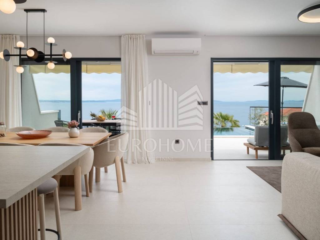 Na najvišoj etaži nalaze se dvije spavaće sobe s vlastitim kupaonicama, spremište i praonica, kao i mini kuhinja sa šankom i izlazom na veliku terasu s jacuzzijem. Terasa je natkrivena pokretnom pergolom s ambijentalnom rasvjetom, a s nje se pruža otvoren pogled na more.