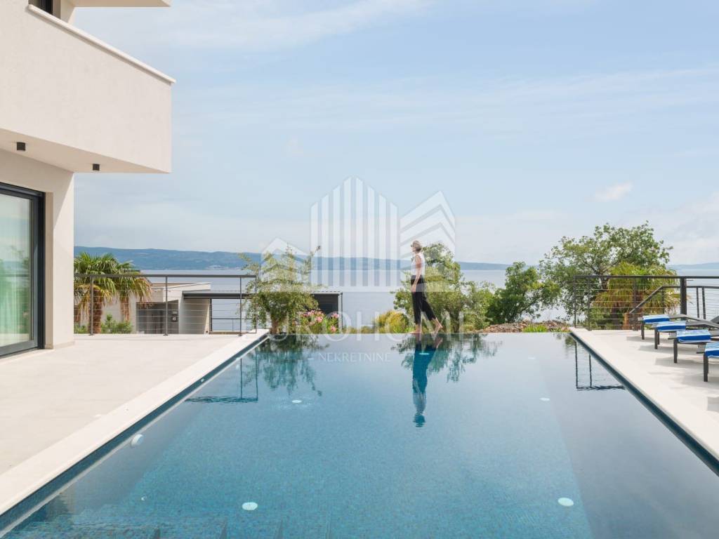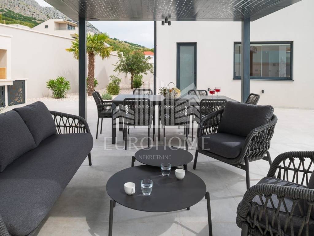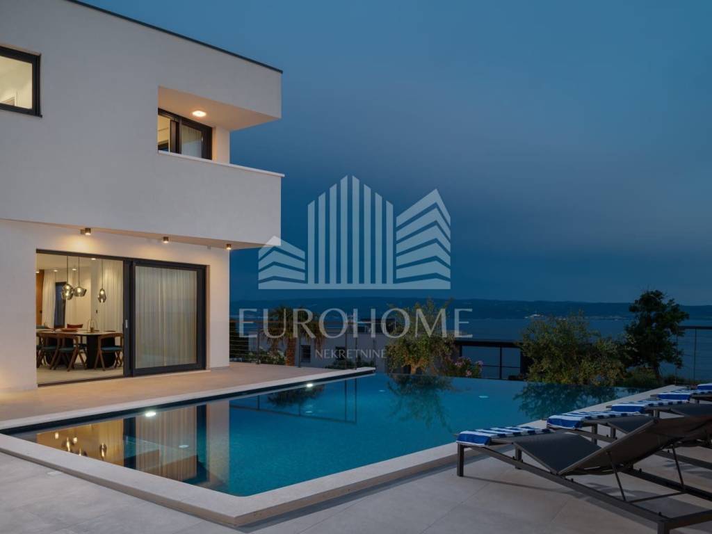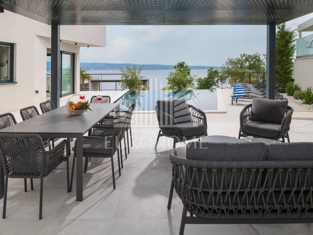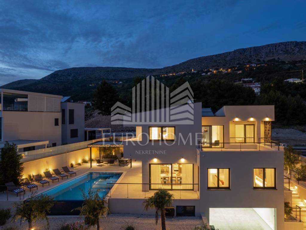 U mirnom i ekskluzivnom dijelu Podstrane, svega 300 metara od mora, smještena je elegantna i moderno dizajnirana luksuzna vila koja nudi vrhunski komfor, privatnost i spektakularan panoramski pogled na more.