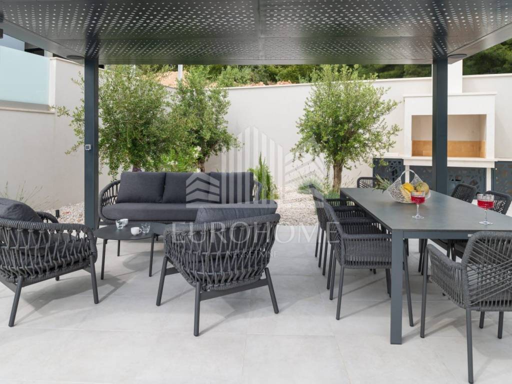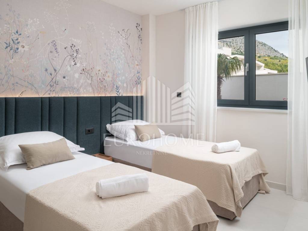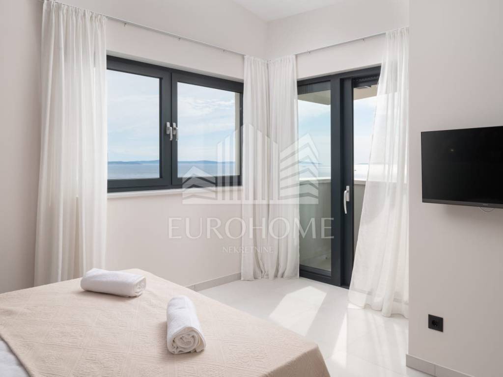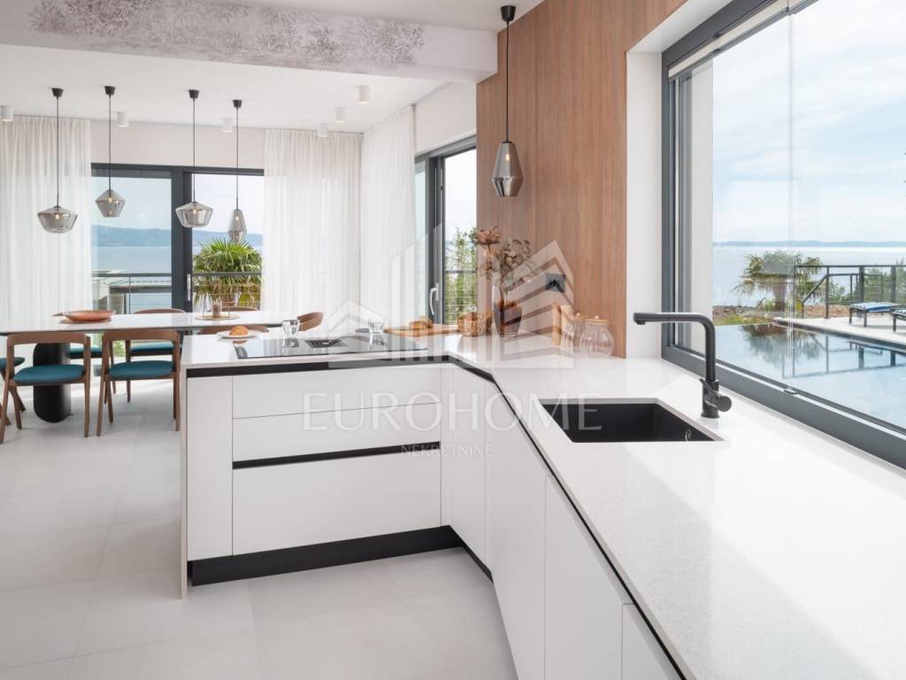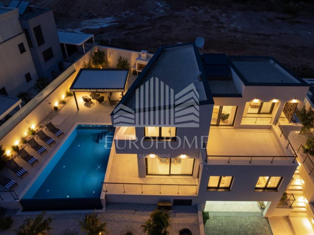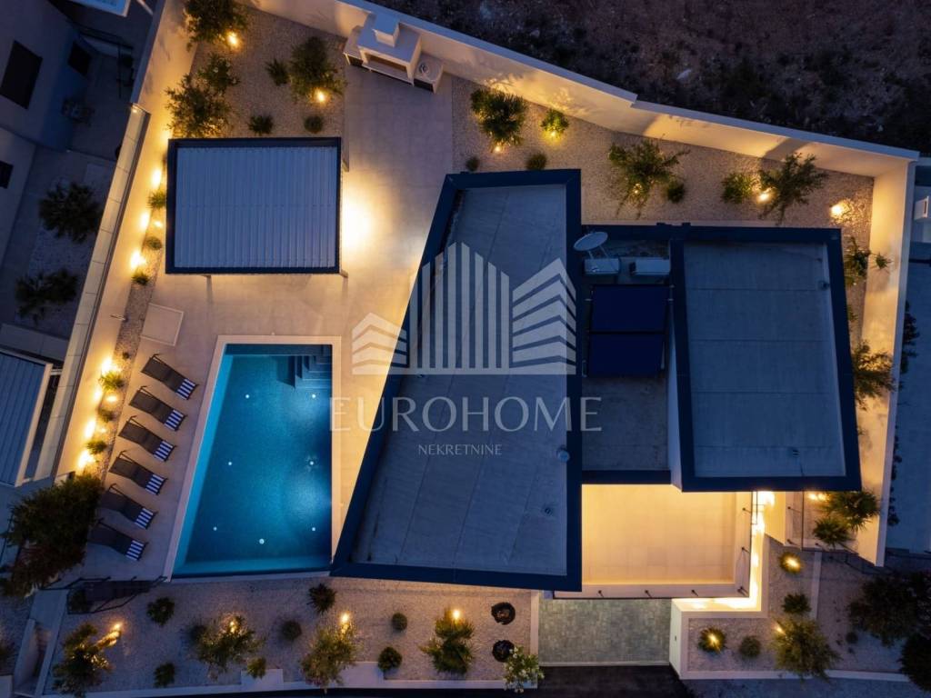 U mirnom i ekskluzivnom dijelu Podstrane, svega 300 metara od mora, smještena je elegantna i moderno dizajnirana luksuzna vila koja nudi vrhunski komfor, privatnost i spektakularan panoramski pogled na more.