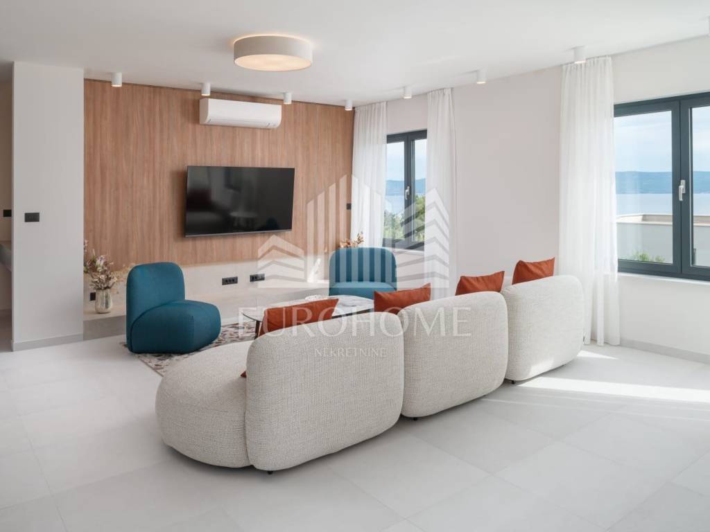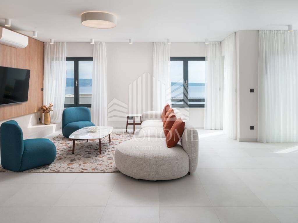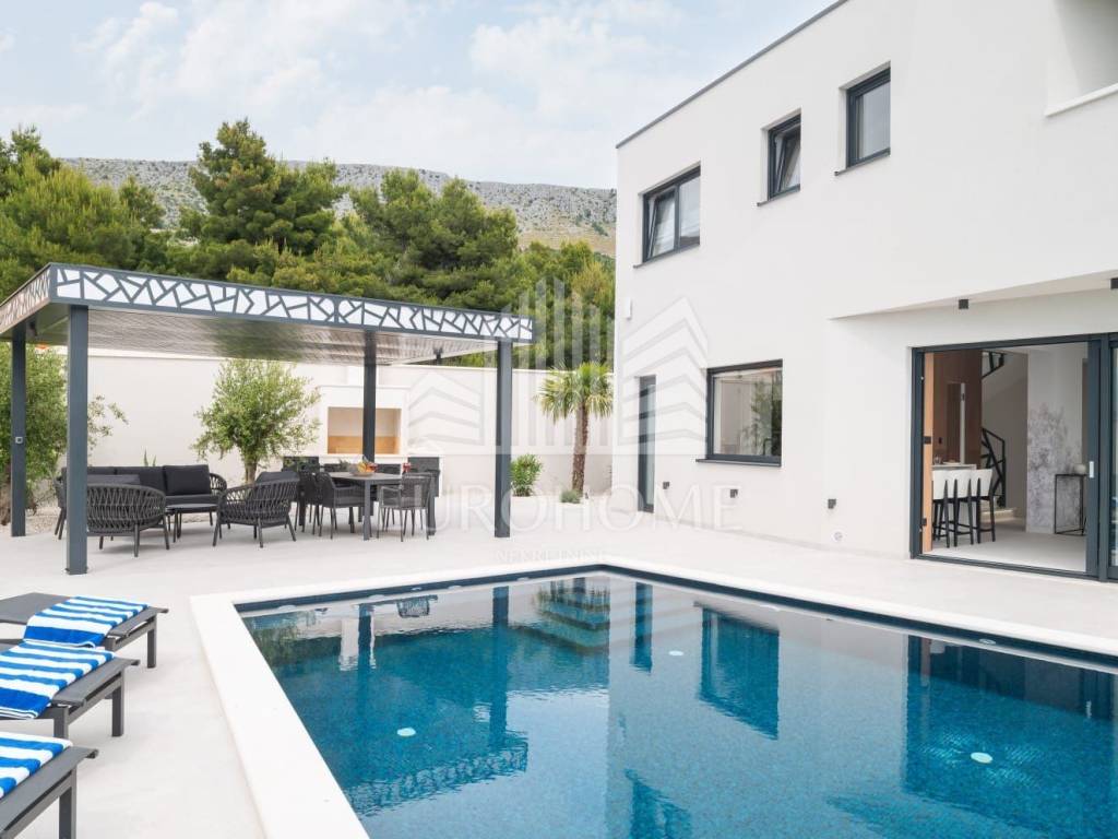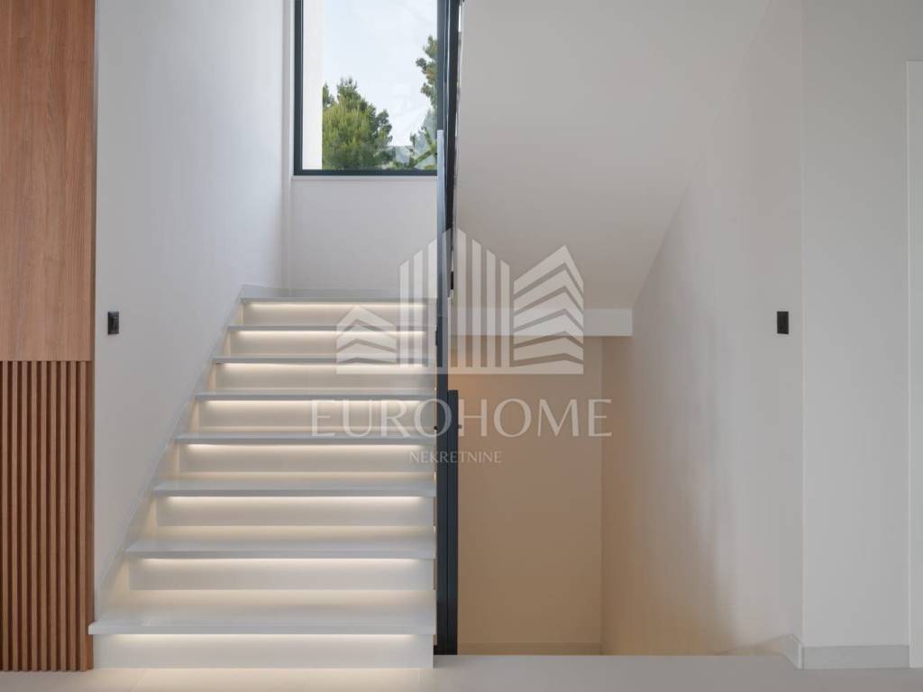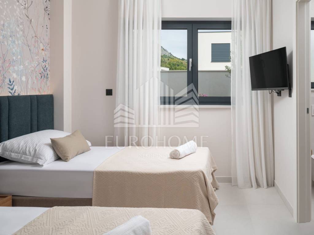 U mirnom i ekskluzivnom dijelu Podstrane, svega 300 metara od mora, smještena je elegantna i moderno dizajnirana luksuzna vila koja nudi vrhunski komfor, privatnost i spektakularan panoramski pogled na more.
