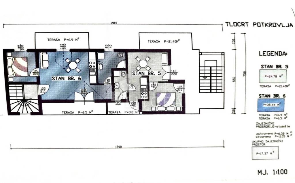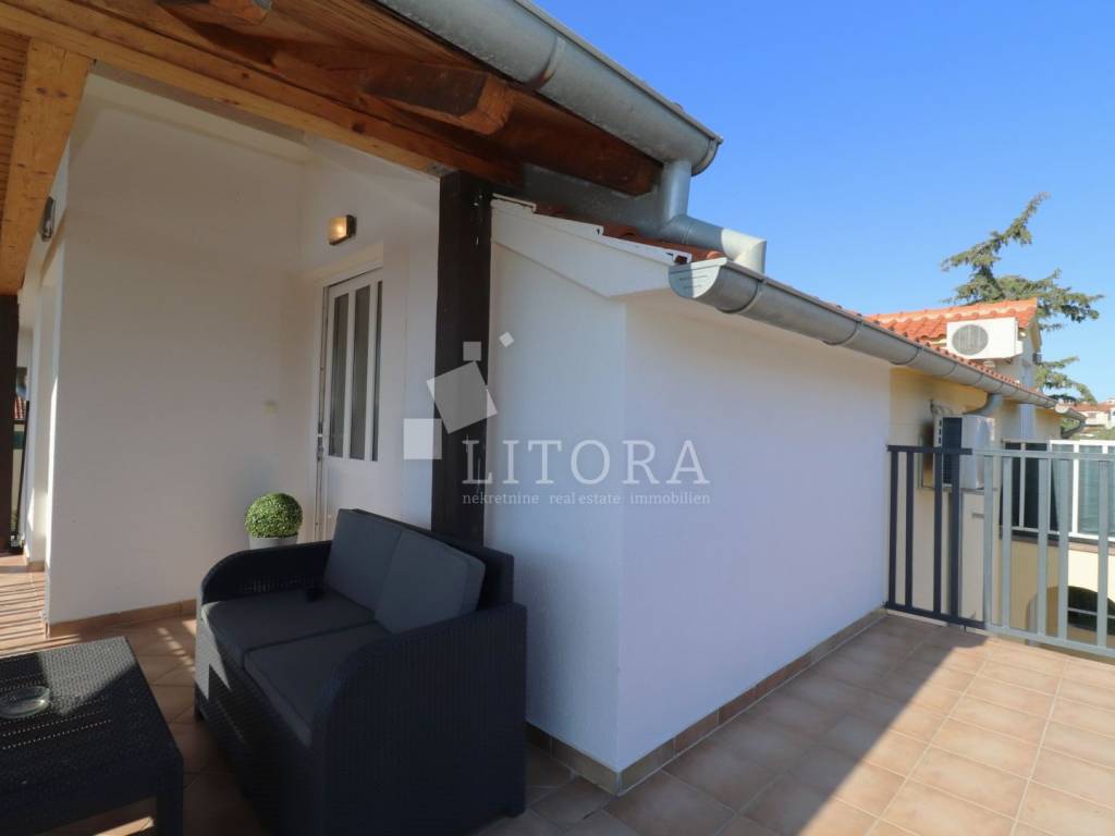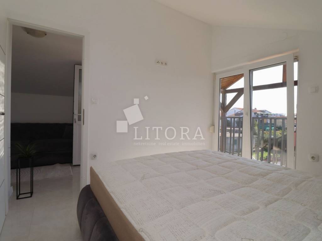 Apartman ukupne površine 46,02 m² smješten je u potkrovlju stambene zgrade s ukupno šest apartmana, na udaljenosti od samo 400 metara od strogog centra grada i 900 metara od plaže.