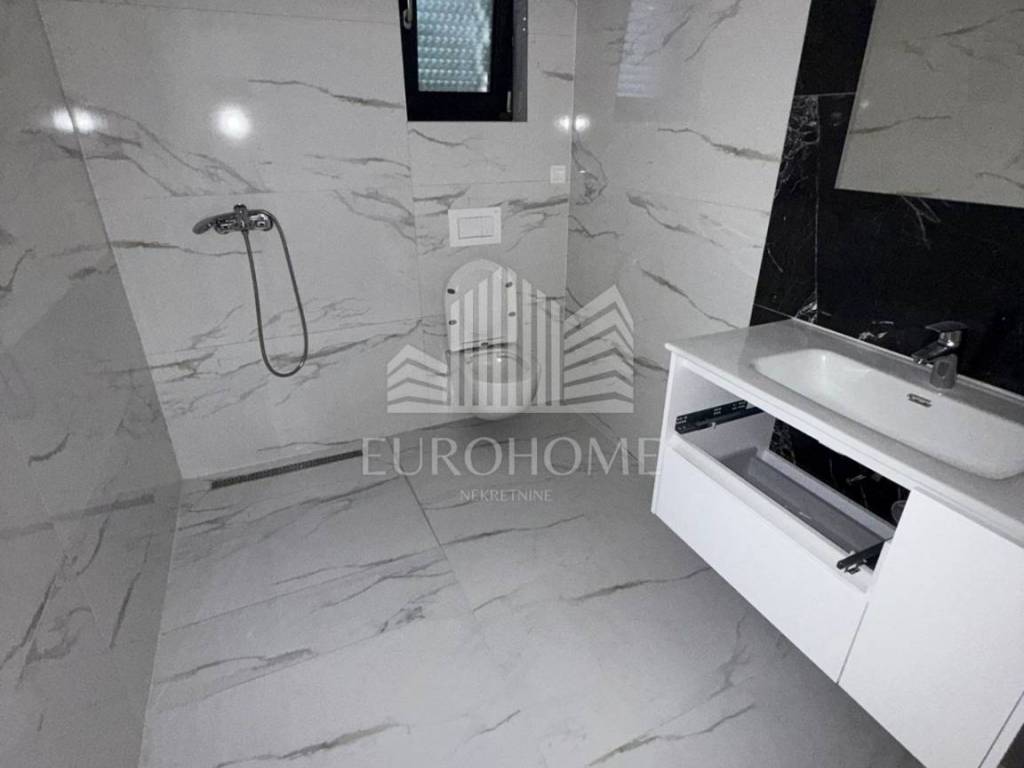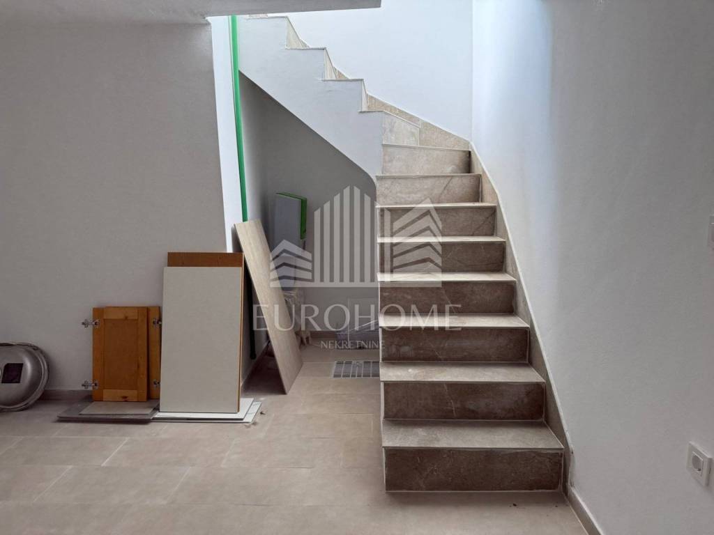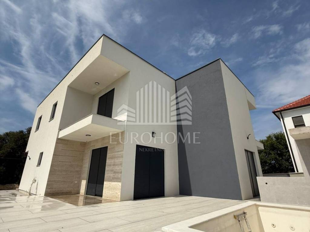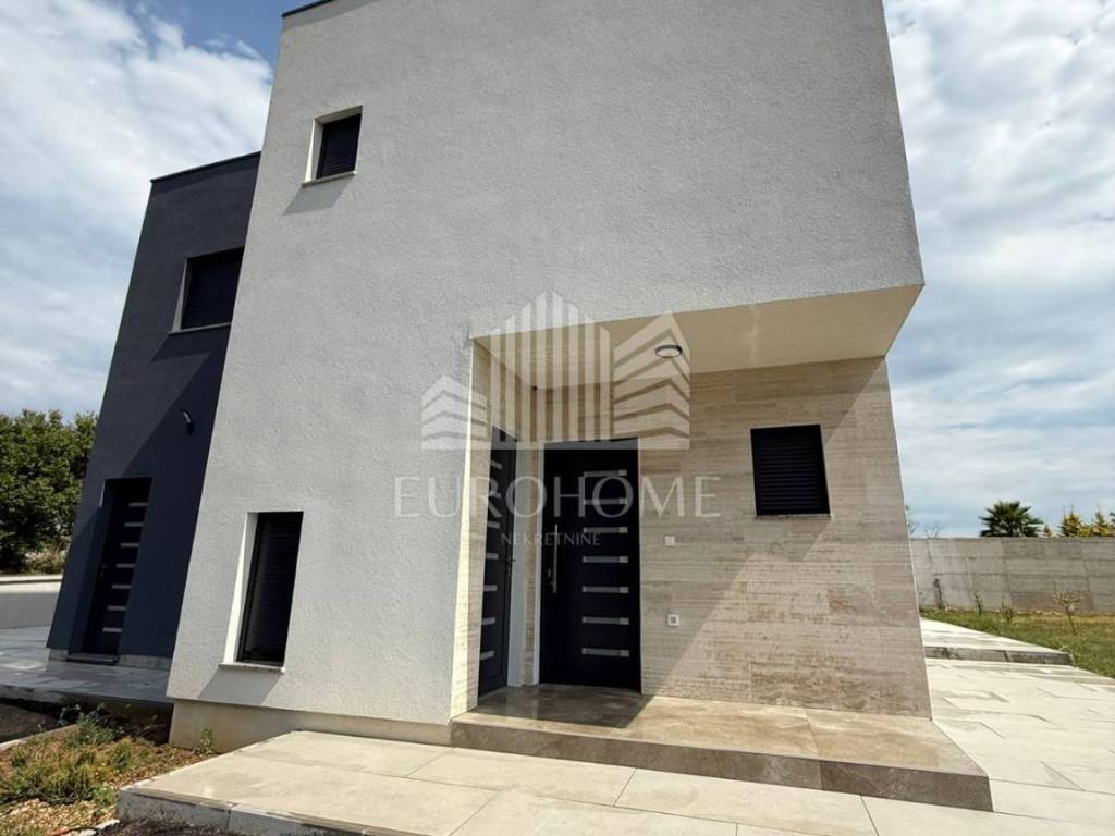 Zaton, predivna dvojna kuća s bazenom (115 m2) i prostranom okućnicom (250 m2). Kuće su oglašene odvojeno kao zrcalne polovice i obe su na prodaju. Također mogućnost kupnje dodatnog građevinskog zemljišta uz objekt po dogovoru (300 m2). Samo 500 metara od mora, blizina suhog veza! Kuća se sastoji od velikog dnevnog boravka, kompletno opremljene kuhinje, blagovaonice, tri spavaće sobe, 2 kupaonice i terase s izlazom na bazen. Također sadrži veliki prostor predviđen za opremanje teretane. Sadrži privatno parkiralište. Kuća se nalazi u mirnom dijelu naselja, blizina svih potrebnih sadržaja za život. Izrazito kvalitetna gradnja objekta. Odlična prilika!