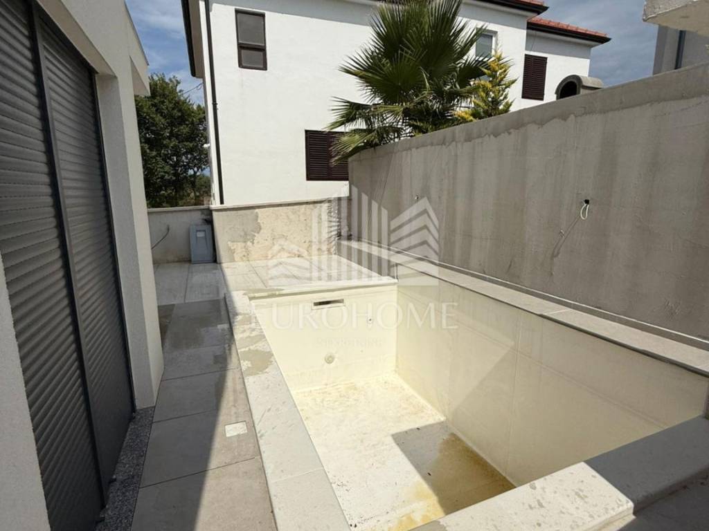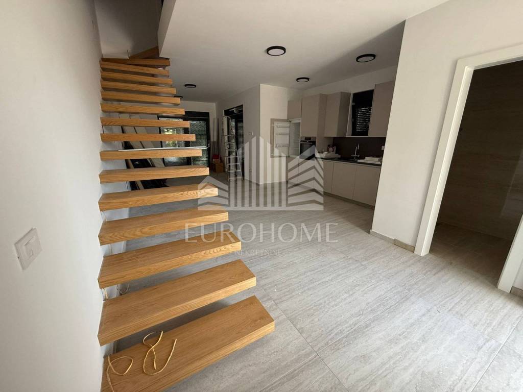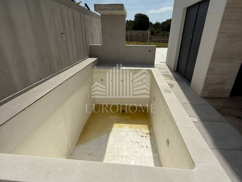 Zaton, predivna dvojna kuća s bazenom (115 m2) i prostranom okućnicom (250 m2). Kuće su oglašene odvojeno kao zrcalne polovice i obe su na prodaju. Također mogućnost kupnje dodatnog građevinskog zemljišta uz objekt po dogovoru (300 m2). Samo 500 metara od mora, blizina suhog veza! Kuća se sastoji od velikog dnevnog boravka, kompletno opremljene kuhinje, blagovaonice, tri spavaće sobe, 2 kupaonice i terase s izlazom na bazen. Također sadrži veliki prostor predviđen za opremanje teretane. Sadrži privatno parkiralište. Kuća se nalazi u mirnom dijelu naselja, blizina svih potrebnih sadržaja za život. Izrazito kvalitetna gradnja objekta. Odlična prilika!