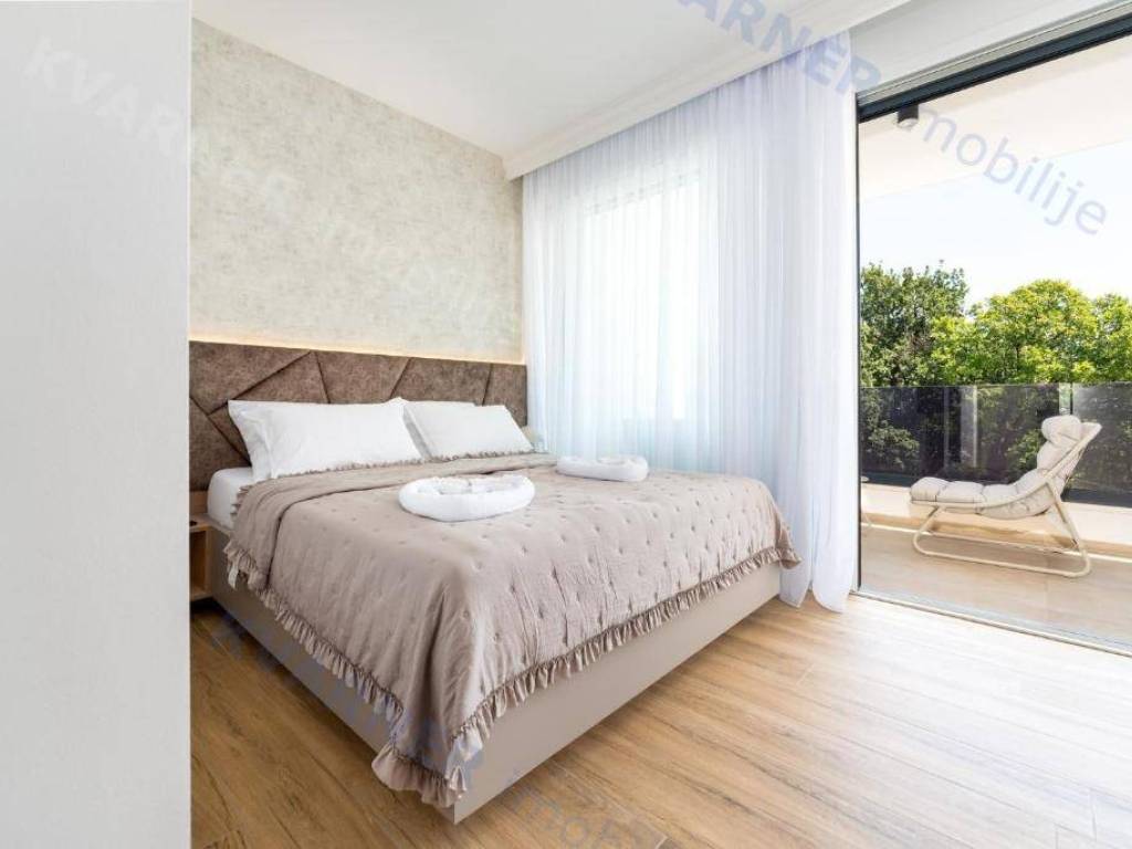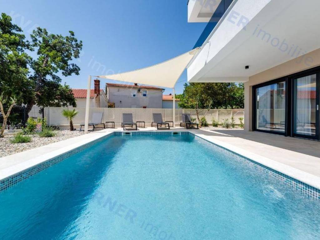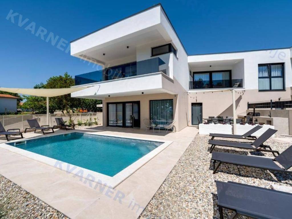 Prodaje se novoizgrađena luksuzna dvojna kuća, smještena na mirnoj i atraktivnoj lokaciji, nedaleko od centra. Kuća se sastoji od prizemlja i kata, moderno je uređena te opremljena svim sadržajima za udoban život ili turistički najam.