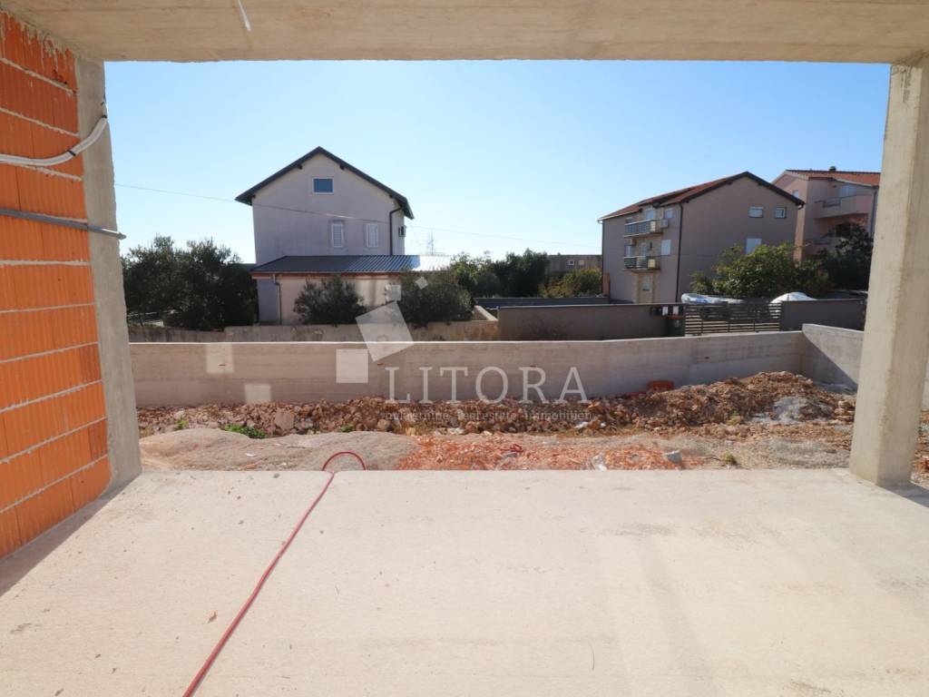 Vodice, širi centar –moderni dvosobni apartman u prizemlju novogradnje, smješten u mirnom dijelu grada. Apartman ima ukupno 71,57 m² korisne površine i sastoji se od hodnika, dvije spavaće sobe, kupaonice te prostranog dnevnog boravka povezanog s kuhinjom i blagovaonicom, iz kojeg se izlazi na natkrivenu terasu i veliki vrt od 130 m². Ovaj vanjski prostor idealan je za privatnost, druženja na otvorenom ili uređenje prema vlastitim željama.