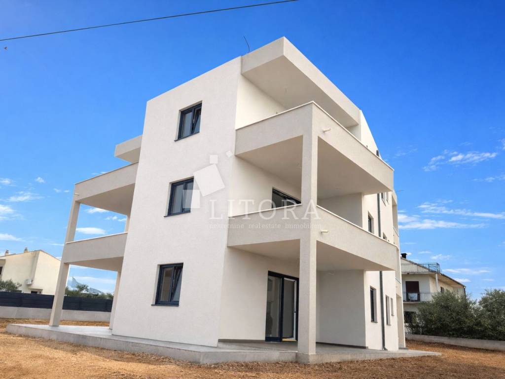 Zgrada je modernog izgleda i bit će opremljena visokokvalitetnim podnim oblogama, kvalitetnom unutarnjom i vanjskom stolarijom, klima uređajima za grijanje i hlađenje u svakoj prostoriji, električnim podizačima roleta i komarnicima, što osigurava visoku razinu udobnosti i funkcionalnosti. Apartmanu pripada jedno vanjsko parkirališno mjesto.
