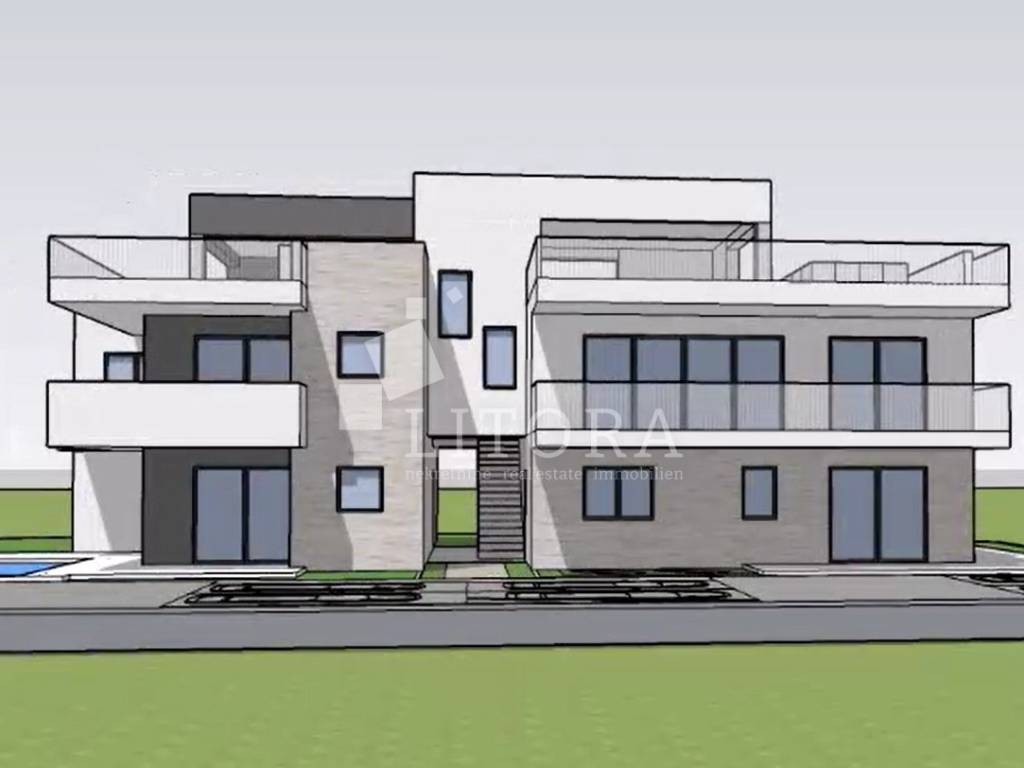 Vodice – Novogradnja, Dvoetažni trosobni apartman površine 143,49 m² s velikom krovnom terasom i bazenom. Smješten je na prvom katu novoizgrađene stambene zgrade, s pripadajućom krovnom terasom. Zgrada se nalazi na mirnoj i pristupačnoj lokaciji, udaljena 950 m od plaže i 1.700 m od centra Vodica, s lako dostupnim svim sadržajima potrebnim za ugodan boravak i život.