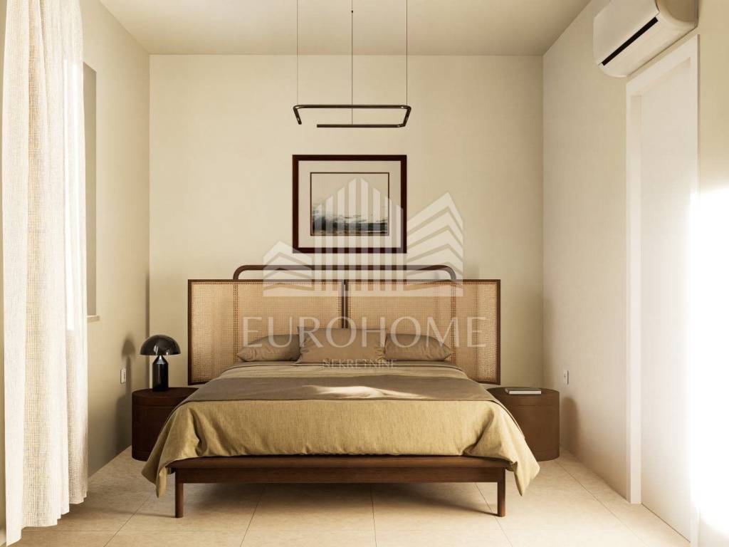 Zgrada je moderno projektirana u mediteranskom stilu, s fasadom djelomično obloženom kamenom. Nalazi se na mirnoj i atraktivnoj lokaciji, 200 metara od plaže te u neposrednoj blizini trgovine, kafića i restorana. Stan ima orijentaciju sjeverozapad – jugoistok, što osigurava optimalno prirodno osvjetljenje tijekom dana.