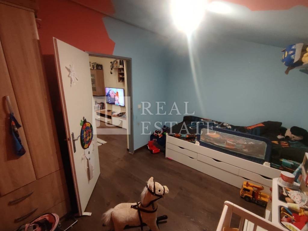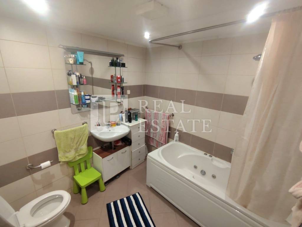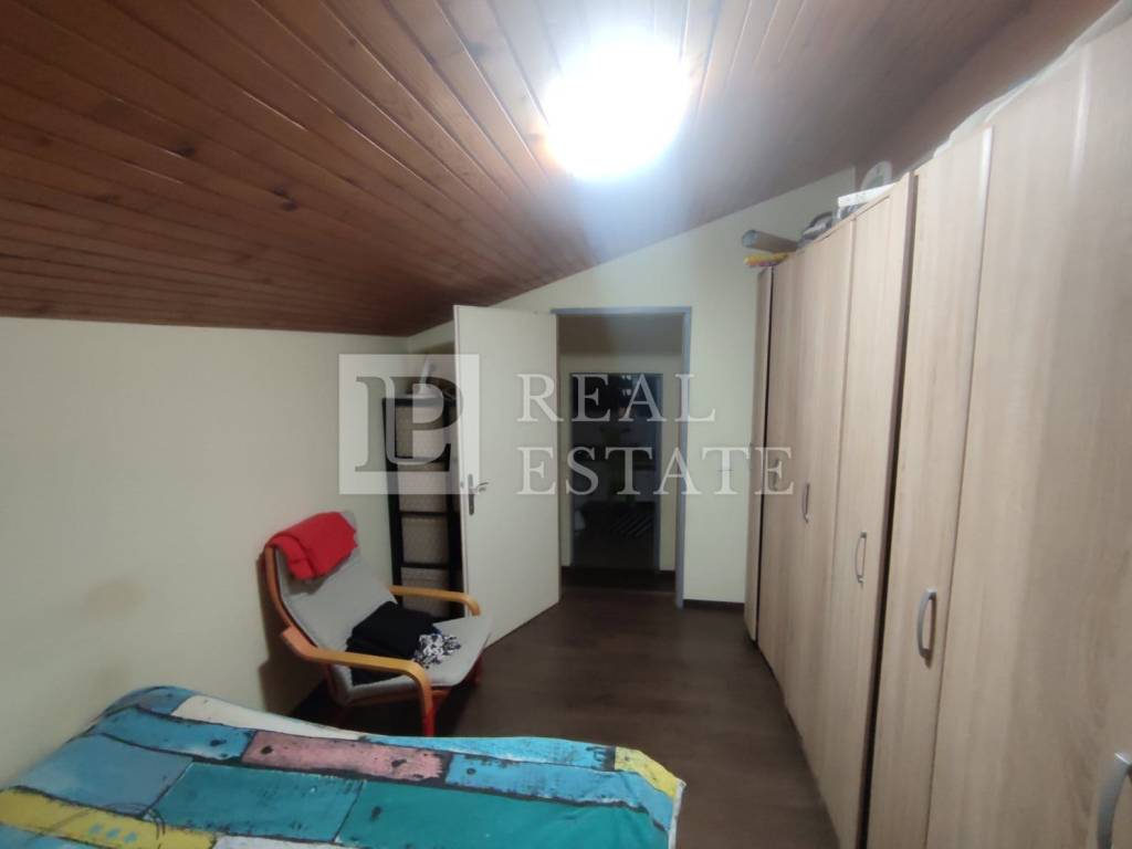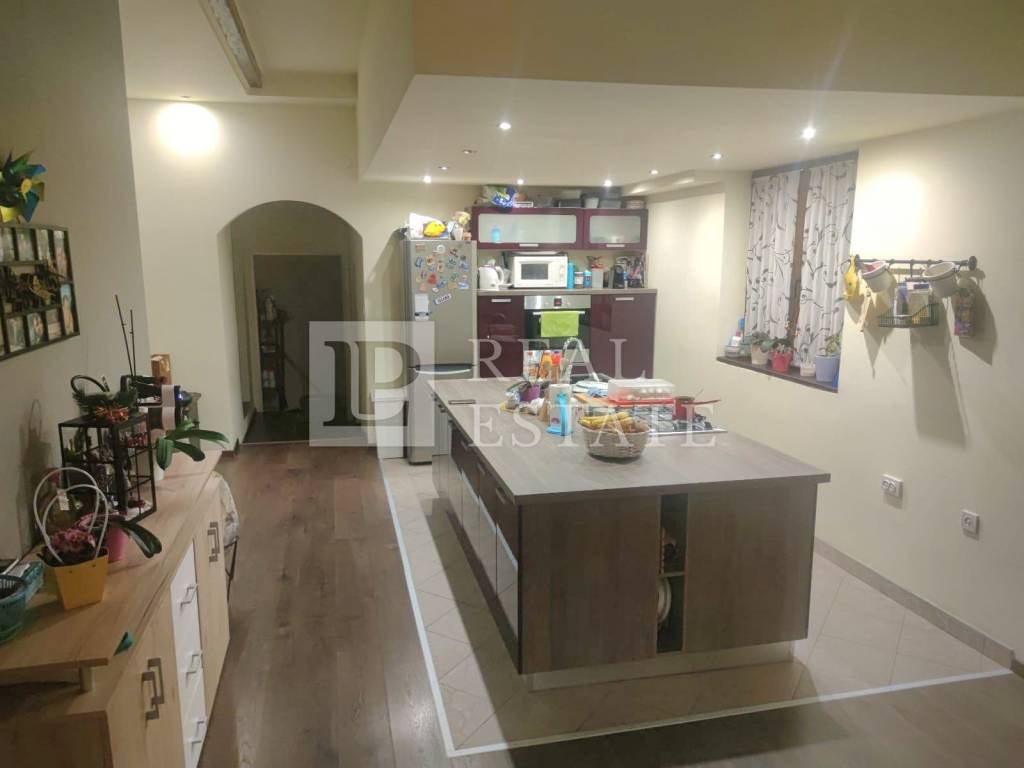 Na prvom katu kuće nalazi se prostrani stan površine 115 m2 koji se prodaje uređen i namješten, a iz istoga se pruža otvoreni pogled na more. Stan se sastoji od dnevnog boravka s kuhinjom i blagovaonicom, predsoblja i dvije spavaće sobe, kupaonice te balkona. Stan je adaptiran (nove zidne i podne obloge, nova keramika i sanitarije) te se prodaje potpuno namješten.