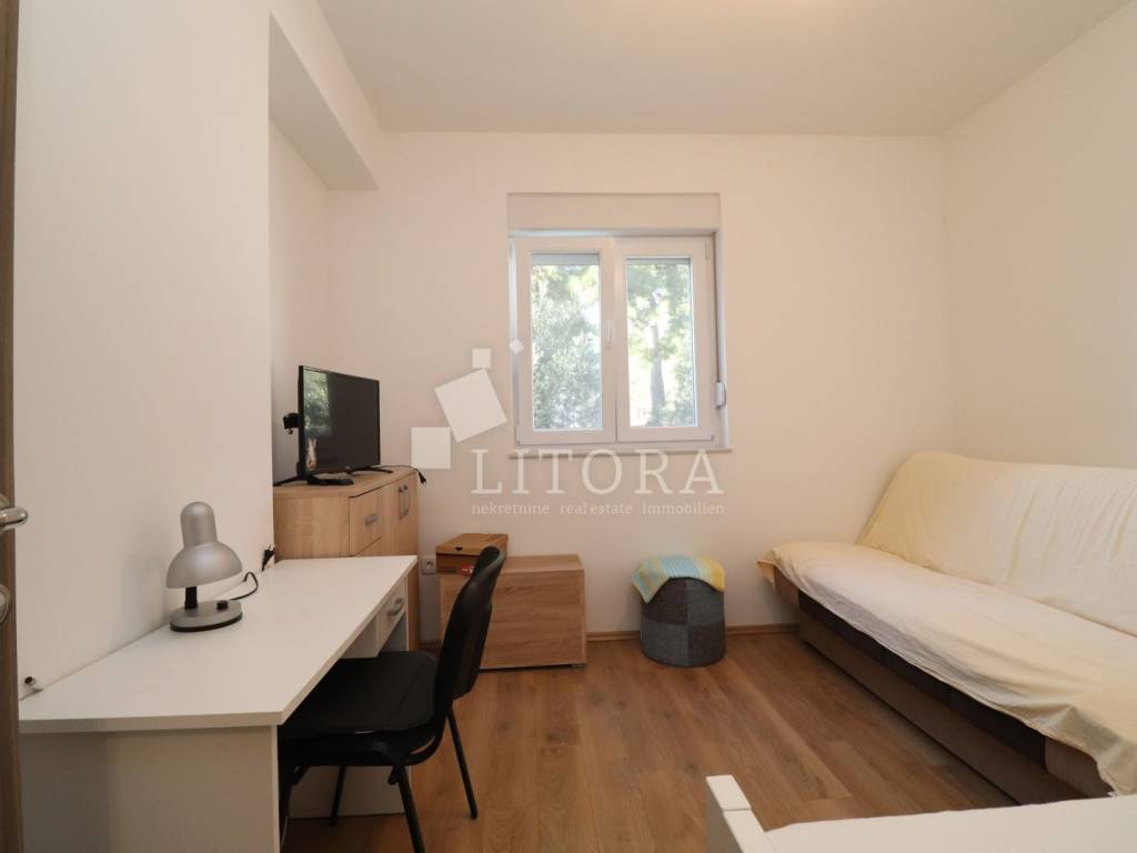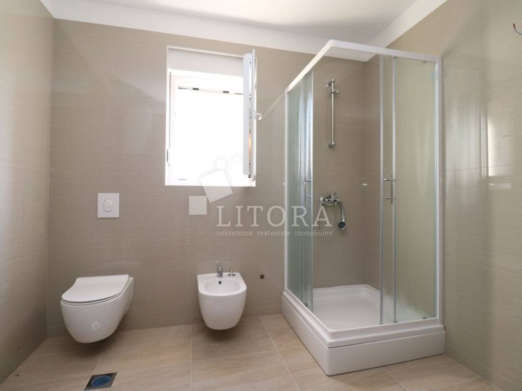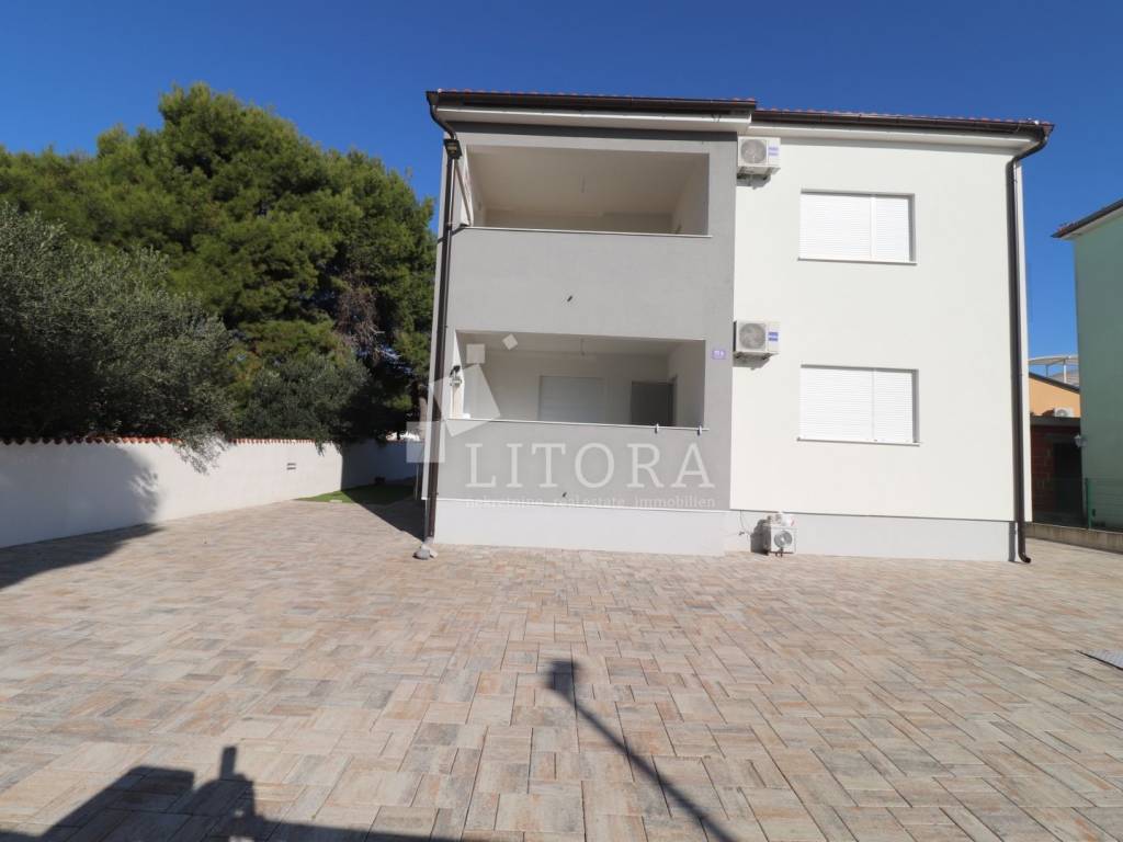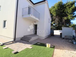 Na mirnoj lokaciji u Vodicama nalazi se novoizgrađena obiteljska kuća s 217m² korisne površine, sagrađena na parceli od 512 m². Kuća se sastoji od dvije zasebne stambene jedinice, svaka sa svojim zasebnim ulazom. U prizemlju je smješten komforan trosobni stan koji se sastoji od hodnika, tri spavaće sobe, dvije kupaonice, velike kuhinje te prostranog dnevnog boravka s izlazom na terasu. Na 1. katu nalazi se također komforan trosobni stan koji se sastoji od hodnika, tri spavaće sobe, dvije kupaonice, velike kuhinje te prostranog dnevnog boravka s izlazom na terasu. Kuća ima malu suterensku ostavu. Okućnica je u potpunosti ograđena, a parkirni prostor je popločan. Kuća je opremljena klima uređajima. Stan u prizemlju je namještena i odmah useljiva; Nekretnina je udaljena 850 m od uređene plaže te 1.050 m od centra grada. Nudi se i mogućnost prodaje zasebnih stanova. Stanovi će biti etažirane stambene jedinice, svaka sa pripadajućim dvorištem i parkirnim prostorom. Stan u prizemlju od 99m2 po cijeni od 300.000 € Stan na 1. katu od 107m2 po cijeni od 310.000 €