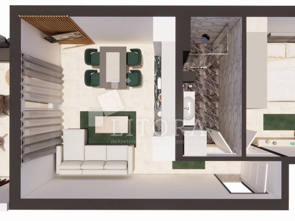 Brodarica Prestige Residences, ekskluzivni stambeni projekt u neposrednoj blizini mora. Objekt Rezidenc 2 – moderan stan S4 ukupne korisne površine 58,10m² je smješten na 1. katu manje stambene zgrade. Stan ima površinu 42,09m2 i sastoji se od jedne spavaće sobe, kupaone, kuhinje sa blagovaonom sa izlazom na terasu 12,08m2. Stanu pripada parkirno mjesto površine 15m2 i spremište površine 3,20m2. Biti će opremljen visokokvalitetnom alu stolarijom s komarnicima i troslojnim staklima, premium izolacijom kamene vune, premium keramika i sanitarije, premium troslojnim parketom, podnim grijanjem u kupaonici i dnevnom boravku, te klima uređajima. Zgrada ima podzemni spremnik za otpad. Završetak i useljenje predviđeno kraj 2026 g. Udaljenost do mora/plaže je 80m, što ovu nekretninu čini idealnom za miran obiteljski život ili turističko iznajmljivanje.