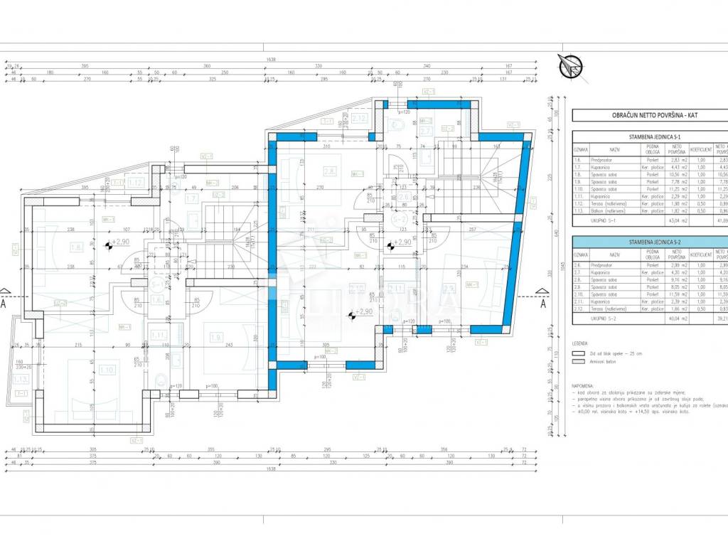 Na 1. katu kuće nalaze se tri spavaće sobe, dvije kupaonice i balkon. Kuća će biti opremljena kvalitetnom PVC/aluminijskom stolarijom s roletama i komarnicima. Podno grijanje bit će postavljeno u svim kupaonicama, kao i u dnevnom boravku i kuhinji. Svaka soba, kao i dnevni boravak, imat će klima uređaj za grijanje i hlađenje. Bazen će imati dimenzije 5 × 3 m te će biti opremljen osnovnom bazenskom opremom i rasvjetom.