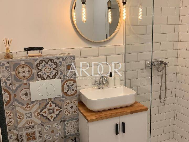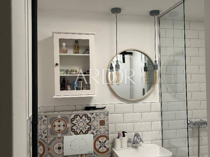 Ovaj svijetli i moderni stan u centru Donje Vežice nudi prekrasan pogled na more. Sastoji se od hodnika, spavaće sobe, dnevnog boravka, kupaonice, kuhinje i balkona. Orijentiran je na jug, što omogućuje obilje prirodne svjetlosti, a zbog novouređene fasade i stolarije, stan je vrlo energetski učinkovit i ugodan tijekom zime, uz minimalne troškove grijanja.