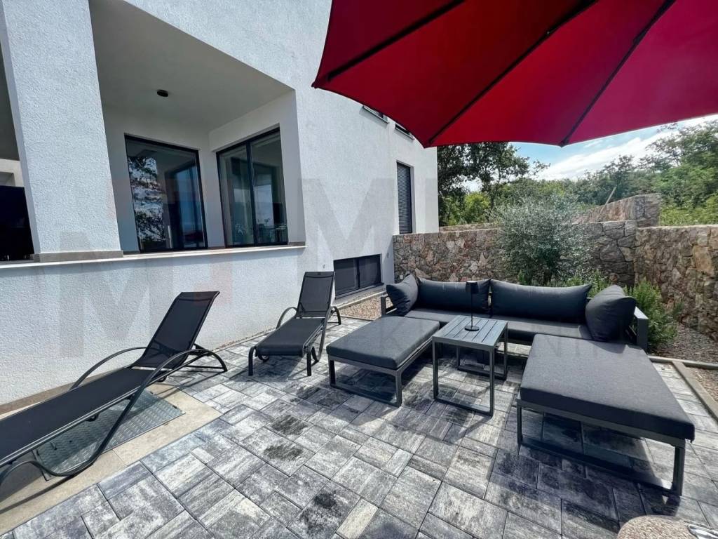 Njivice, namješten dvoetažni apartman s okućnicom i bazenom