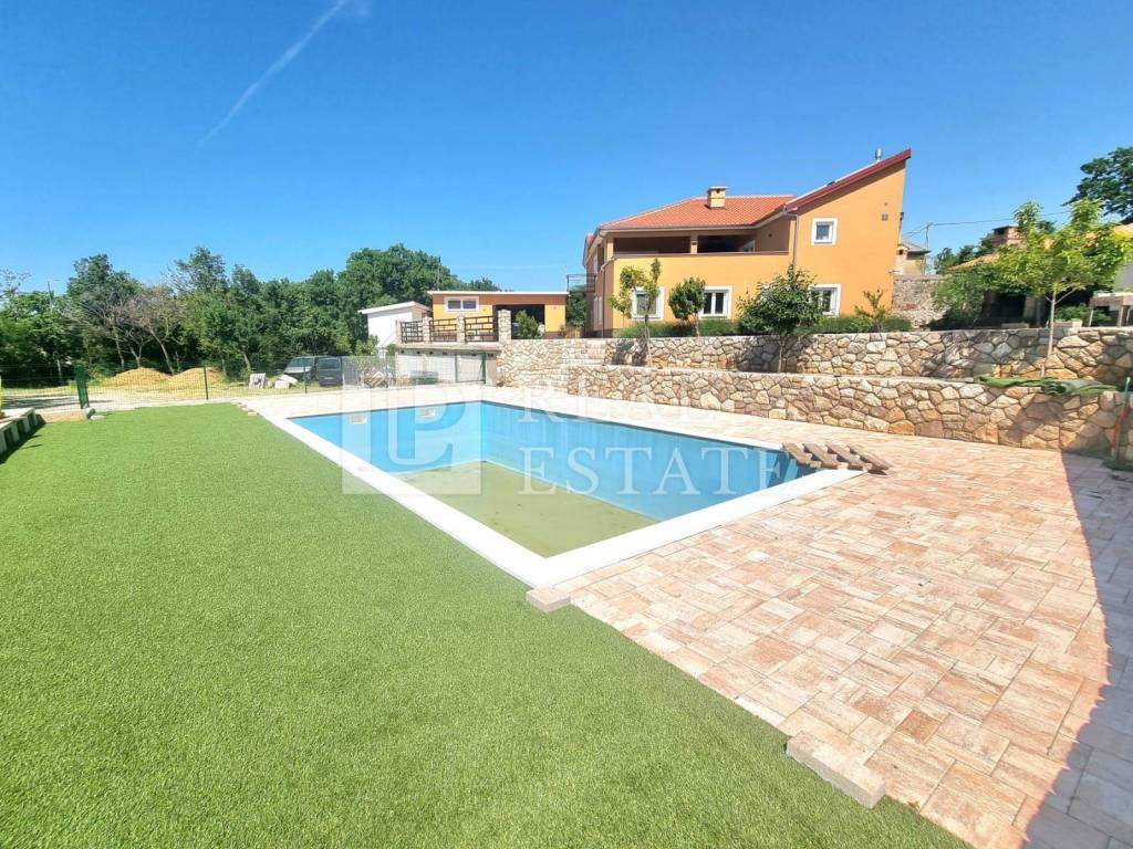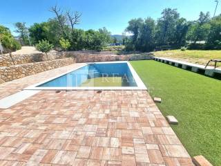Prekrasna prostrana okućnica kuće velika je 2500 m2, a u njoj se nalaze vrtovi, bazen (veličine 9x5 m) sa sunčalištem, tuš, ljetna kuhinja te sjenica s roštiljem i krušnom peći.