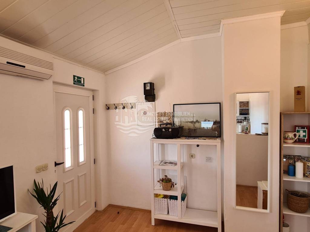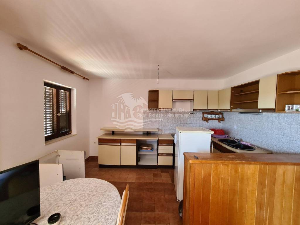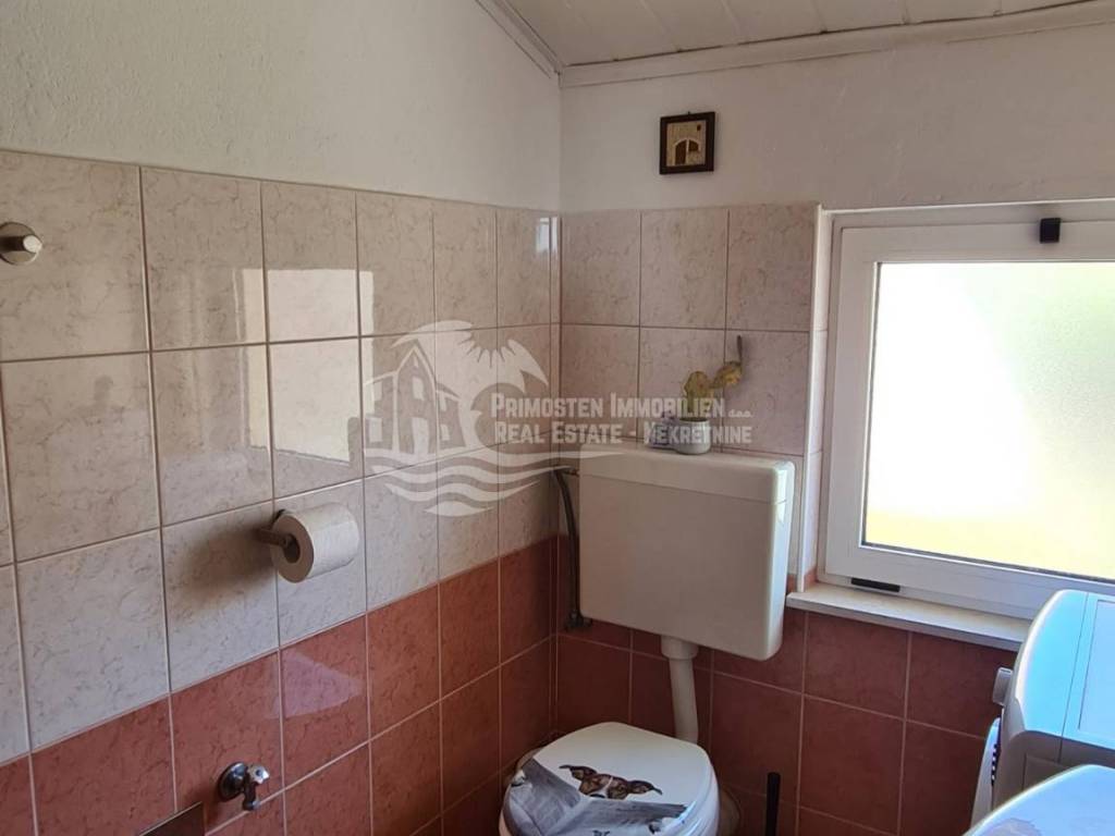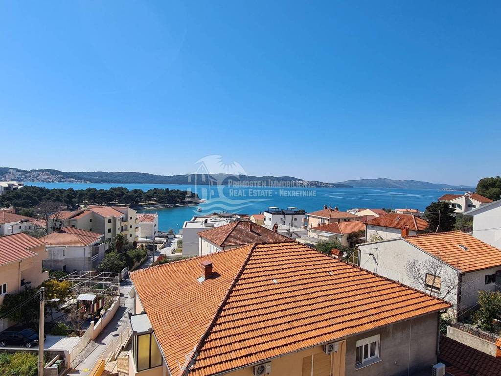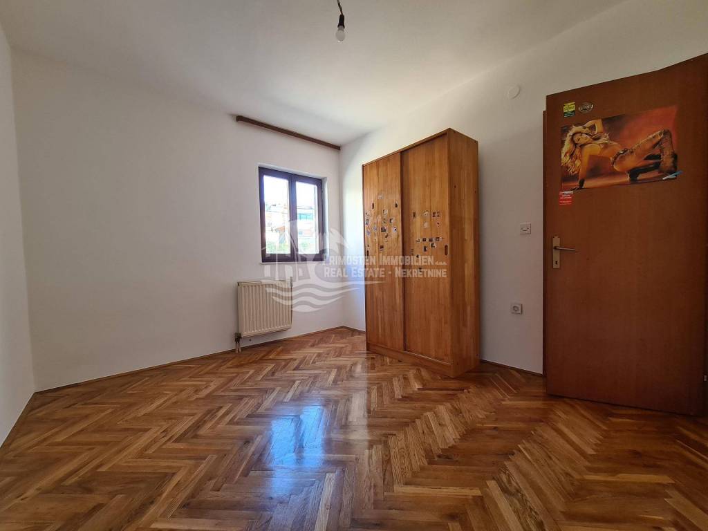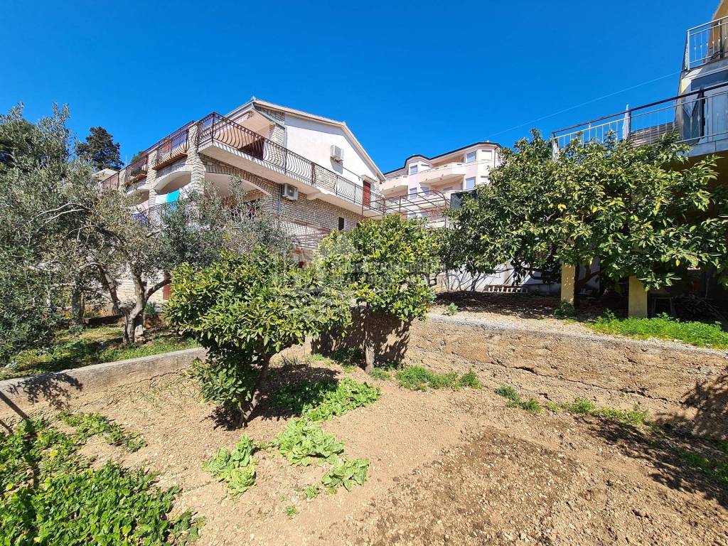 Kuća u Trogiru, 80 m od mora i plaže, sastoji se od suterena, prizemlja i dva kata. Stambena površina je 335 m², a izgrađena je na zemljištu od 524 m². U sklopu suterena se nalazi prostor za ljetnu kuhinju koji sadrži i prostoriju za dnevni boravak, ostava te garaža u kojoj se nalazi bazen za centralno grijanje na lož ulje. Ispred se nalazi i vrt. Stubištem se dolazi na dio prizemlja na kojem se nalazi prostrani peterosobni stan koji se sastoji od dnevnog boravka, kuhinje, četiri spavaće sobe, kupaonice i separatnog WC-a. Tri spavaće sobe imaju izlaz na terasu koja prolazi sa cijelom lijevom stranom stambene jedinice. Pripadajući dio je također i vanjski roštilj sa stražnje strane kuće u razini ove etaže. Također u sklopu sa stražnje strane se nalazi i manji prostor koji se koristi kao dodatni roštilj i ostava za drva. Nadalje, na prvoj etaži se nalaze dva stana. Prvi stan je trosoban te se sastoji od dnevnog boravka, kuhinje, dvije spavaće sobe i kupaonice te ima izlaz na terasu. Drugi stan je dvosoban te se sastoji od dnevnog boravka, kuhinje, spavaće sobe i kupaonice te također ima izlaz na terasu. U sklopu su instalirani i radijatori koji se mogu priključiti na centralno grijanje. Također u razini ove etaže se nalazi dodatni parking sa stražnje strane. Stubištem se dolazi na drugu etažu koja je ujedno i posljednja etaža. Tu se nalaze dva manja stana (cca 25 m² svaki stan). Svaki stan ima kuhinju i dnevni boravak, jednu spavaću sobu, kupaonicu i manju ostavu. Stanovi imaju izlaz na veliku terasu s koje se pruža fantastični panoramski pogled na more koji se ne može zakloniti. Kuća ima sve priključke (struja, voda, kanalizacija), svi stanovi imaju svoje brojilo za struju i vodu te zasebne ulaze. Sve stambene jedinice su etažirane. More se nalazi u blizini, a centar Trogira je udaljen oko 1 km. Zračna luka Split je udaljena oko 10 km.