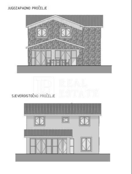 Stambenu površinu od 170 m2 čine dvije etaže: prizemlje i kat. U prizemlju površine 96,35 m2 se nalaze prostrani dnevni boravak, kuhinja s blagovaonom, hodnik, toalet, soba za rekreaciju i natkrivena terasa. Unutarnjim stepeništem dolazi se na kat, gdje su smješteni hodnik, tri spavaće sobe, radna soba i kupaonica, ukupne površine 71,90 m2. Iz prizemnog dijela kuće izlazi se u vrt, unutar kojeg se nalazi bazen od 50 m2 sa sunčalištem.