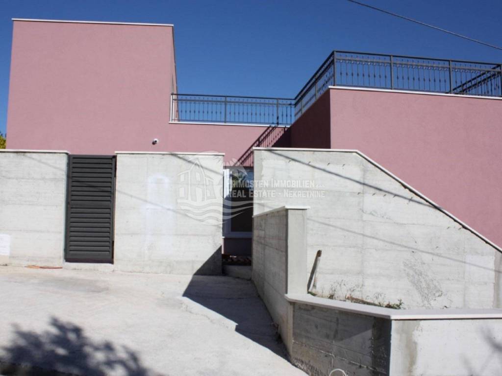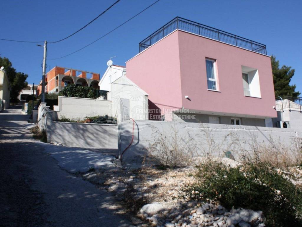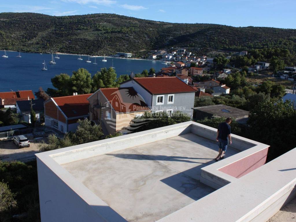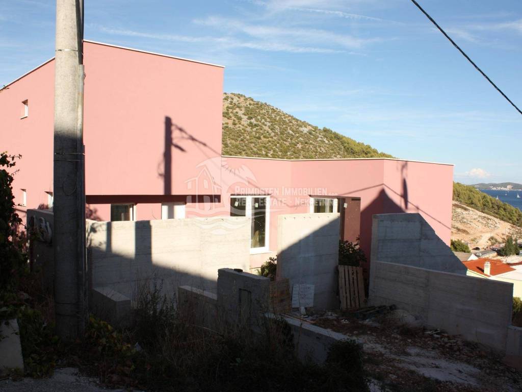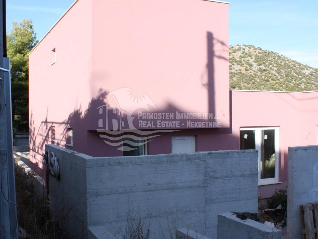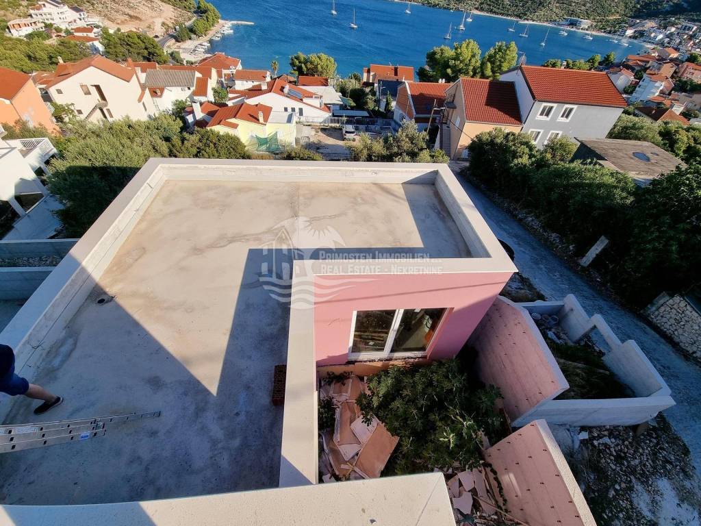 Vila u izgradnji s očaravajućim pogledom na more. Udaljenost od mora je cca 300 m zračne linije. Smještena je na padini u mjestu Marina. Kuća ima stambenu površinu 180 m², površinu okućnice je 340 m² a izgrađena je na parceli netto površine 520 m². Sastoji se od suterena, prizemlja i kata. U suterenu (29 m²) se nalazi kuhinja s blagovaonicom i dnevnim boravkom te kupaonica s WC-om. Nadalje, na prizemlju se nalazi dnevni boravak i kuhinja s pogledom na more, kupaonica i jedna spavaća soba. Na katu se nalaze dvije spavaće sobe, kupaonica te velika terasa od 50 m² južne orijentacije s pogledom na more. U sklopu kuće se nalazi bazen, roštilj, parkiralište sa 5 parkirnih mjesta te vrt.