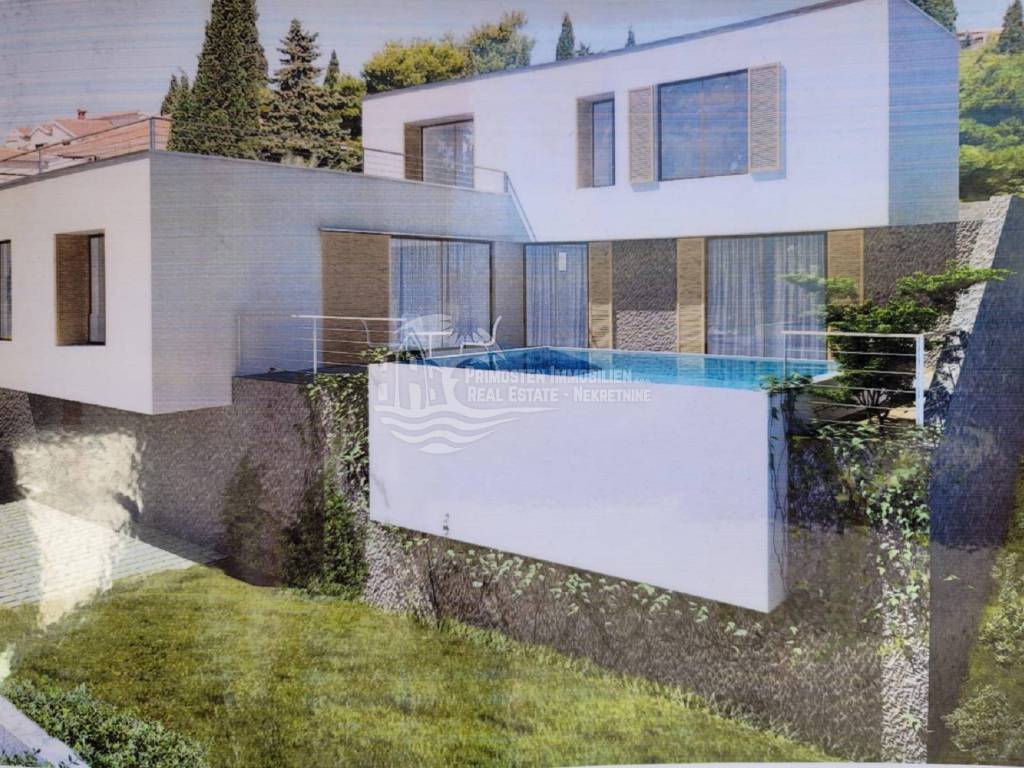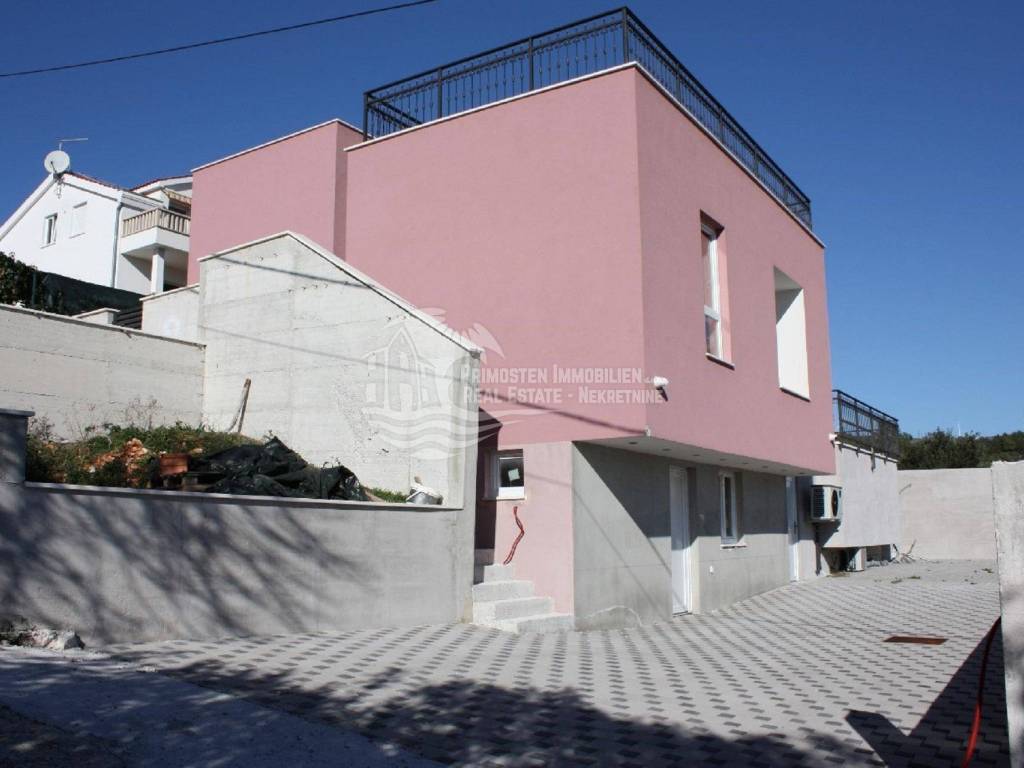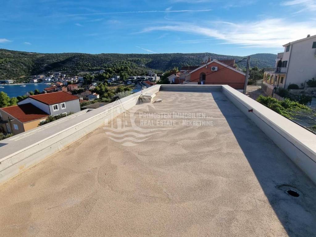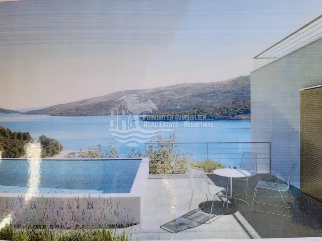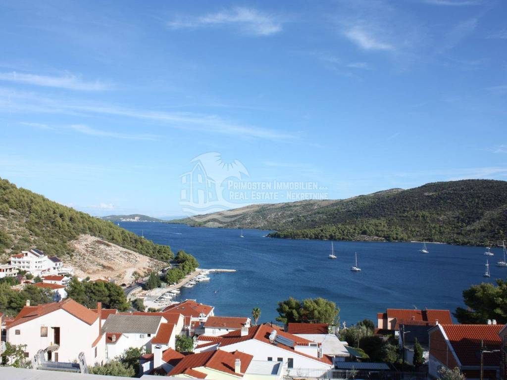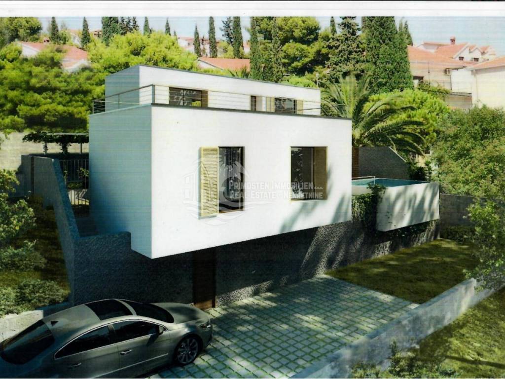 Vila u izgradnji s očaravajućim pogledom na more. Udaljenost od mora je cca 300 m zračne linije. Smještena je na padini u mjestu Marina. Kuća ima stambenu površinu 180 m², površinu okućnice je 340 m² a izgrađena je na parceli netto površine 520 m². Sastoji se od suterena, prizemlja i kata. U suterenu (29 m²) se nalazi kuhinja s blagovaonicom i dnevnim boravkom te kupaonica s WC-om. Nadalje, na prizemlju se nalazi dnevni boravak i kuhinja s pogledom na more, kupaonica i jedna spavaća soba. Na katu se nalaze dvije spavaće sobe, kupaonica te velika terasa od 50 m² južne orijentacije s pogledom na more. U sklopu kuće se nalazi bazen, roštilj, parkiralište sa 5 parkirnih mjesta te vrt.