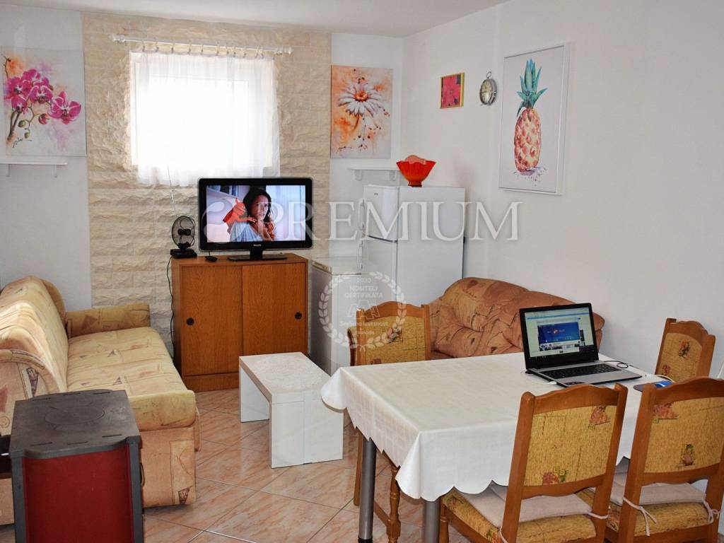 Kuća je okružena zelenilom, smještena na vrlo mirnoj lokaciji, 850 m od mora!