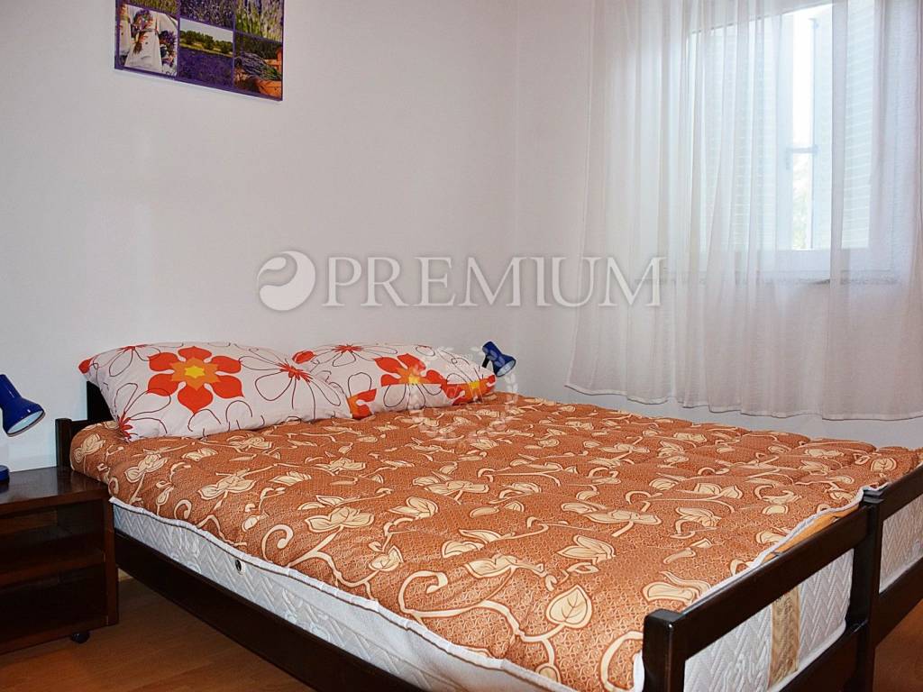 Otok Krk, okolica grada Krka, kuća sa pripadajućom okućnicom na sagrađena na parceli površine 587 m2. Kuća se sastoji od dva apartmana od kojih svaki ima dvije spavaće sobe, kupaonu, dnevni boravak, kuhinju, blagovaonu i terasu od 9 m2. U sklopu kuće je podrum površine 9 m2, a ispred kuće natkriveni vrtni roštilj. U sklopu prostrane, uređene okućnice nalazi se više parkirnih mjesta, od kojih su dva natkrivena, te šterna. PVC stolarija, klasični grijanje na drva, SAT TV, klimatizirano,