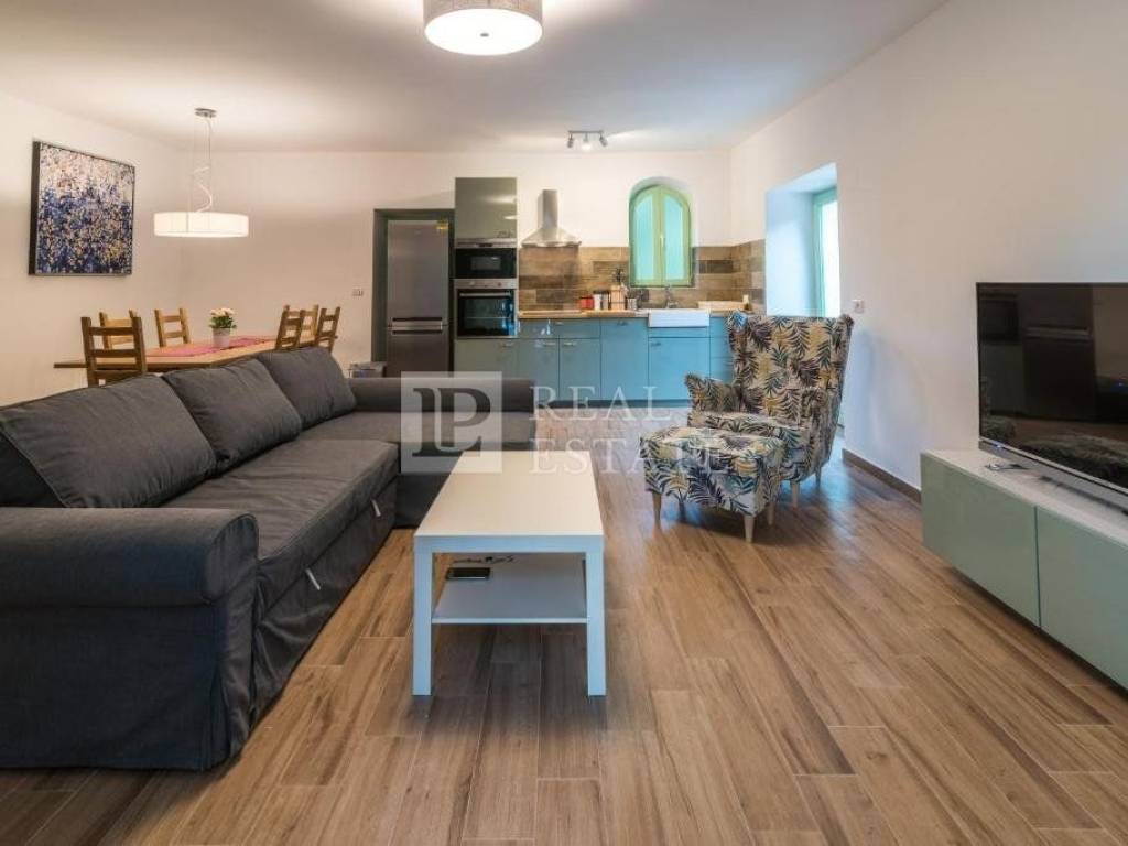 Prodaje se kamena kuća na lijepoj i mirnoj lokaciji, okruženoj prirodom. Kuća je površine 80 m2, a čine ju dvije spavaće sobe, dvije kupaonice, moderna kuhinja s blagovaonom te dnevni boravak.