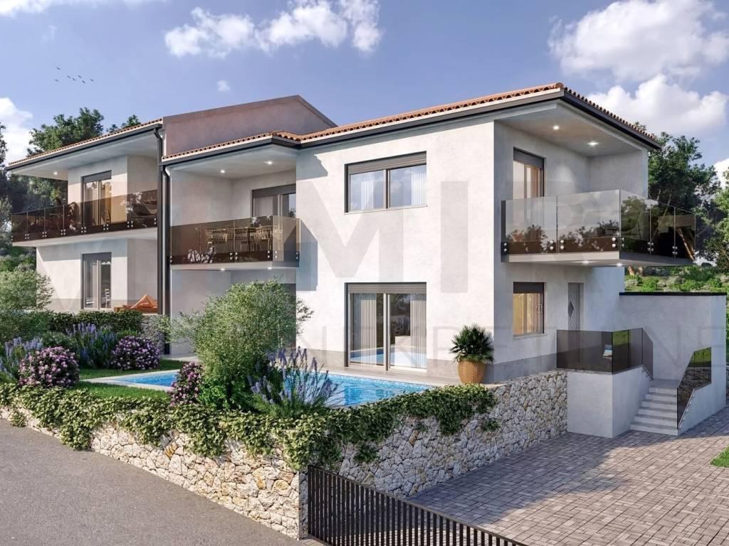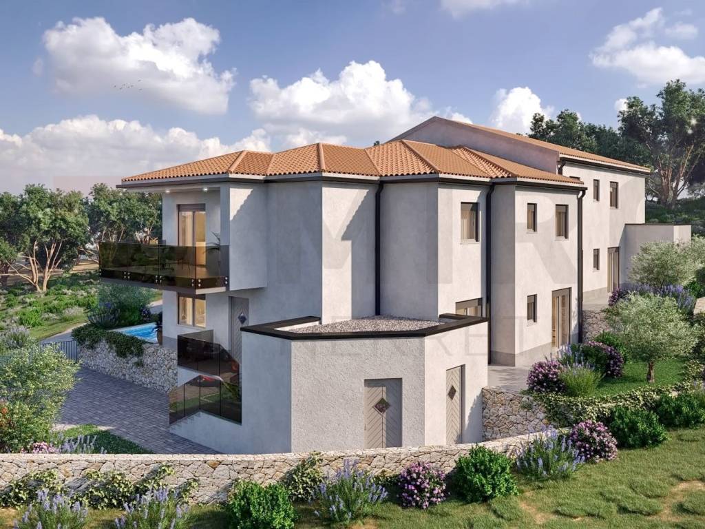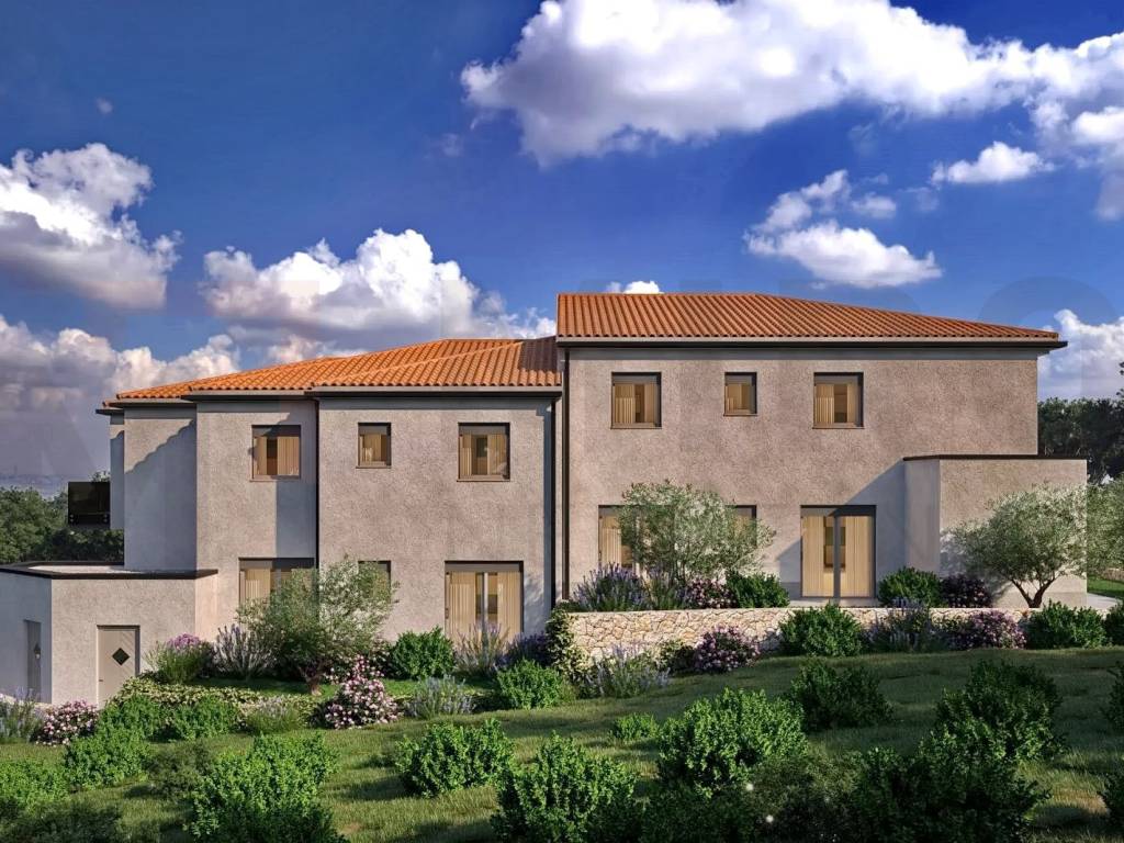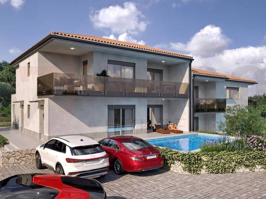 Otok Krk, Vrbnik na prodaji je novi dvosoban apartman s okućnicom, bazenom i pogledom na more. Apartman se nalazi u prizemlju novog objekta sa četiri apartmana te zauzima stambenu površinu od 75 m2. Prostorije su odlično isplanirane te rasporedom obuhvaćaju ulazni hodnik, spremište, toalet, kupaonu, dvije spavaće sobe, kuhinju i blagovaonicu te prostrani dnevni boravak sa izlazom na natkrivenu terasu i lijepo uređenu okućnicu sa vlastitim bazenom, sunčalištem i prostorom za druženje. Apartmanu pripadaju dva parkirna mjesta. Kvalitetna gradnja i oprema, izbor kvalitetne keramike i podnih obloga, moderne sanitarije, PVC stolarija, klimatizirani sustav grijanja/hlađenja. Nalazi na odličnoj lokaciji svega 400 m od mora. Nekretnina je trenutno u izgradnji, a završetak radova i useljenje planira se do ljeta 2026.g. Nekretnina je u sustavu PDV-a i kupac je oslobođen od plaćanja poreza na promet nekretnina. Vlasnik jamči brz prijenos vlasništva na novog kupca. Posjetite nas i pronađite kvadrat vašeg doma!