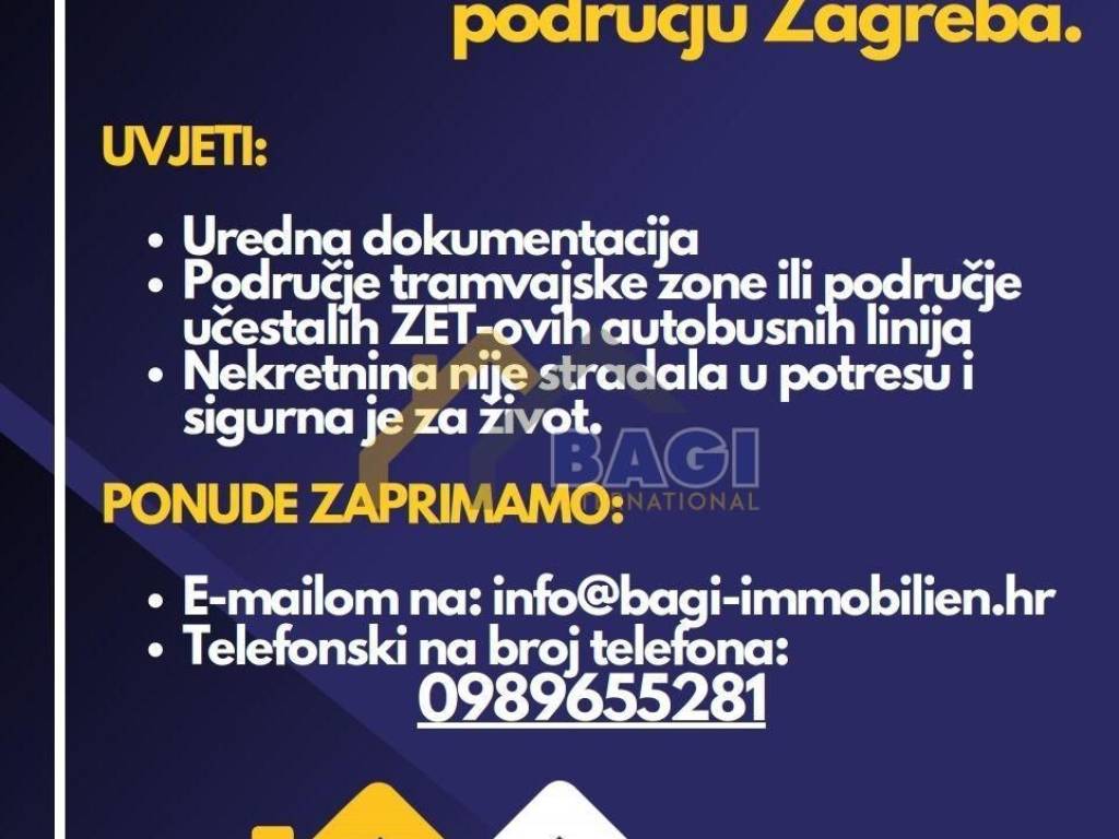 HITNO POTRAŽUJEMO VEĆI BROJ 1-sob., 2-sob., 3-sob. i 4-sob. stanova za prodaju u Zagrebu. Uvjet: Uredna dokumentacija i blizina javnog prijevoza. info@bagi-immobilien.hr 0989655281