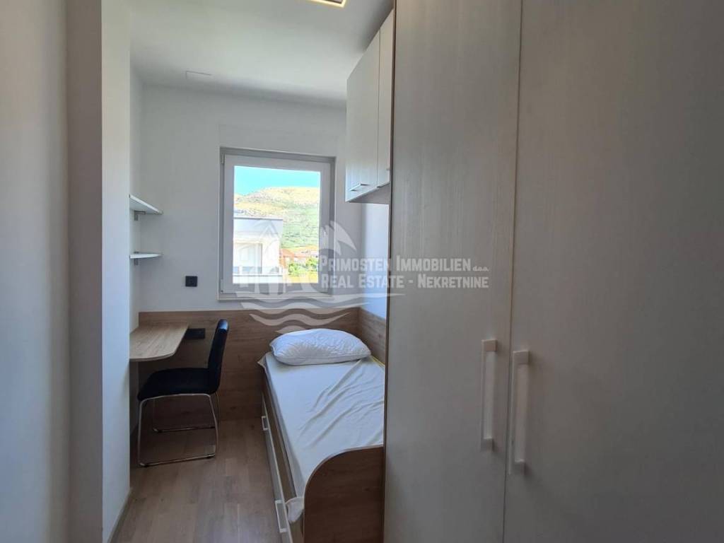 Senzacionalna ponuda! Kompletno namješten i opremljen stan u Segetu Donjem blizu Trogira stambene površine 84m2 koji se nalazi na posljednjem (četvrtom) katu novoizgrađene stambene zgrade. Ovaj luksuzni Penthouse se sastoji od kuhinje s blagovaonicom i prostranog dnevnog boravka, tri spavaće sobe, dvije kupaonice i hodnika. Iz dnevnog dijela se izlazi na prostrani balkon koji je veličine 21,12 m2 i sa kojeg se pruža očaravajući pogled na more. Stanu pripada i ostava od 5m2 koja se nalazi u podrumu i jedno vanjsko parkirno mjesto. Zgrada ima zajednički bazen. Penthause je luksuzno uređen te se prodaje potpuno namješten. Nalazi se na fantastičnoj lokaciji zbog blizine velikih turističkih gradova Trogira i Splita, s bogatom kulturno-povijesnom baštinom i brojnim turističkim atrakcijama, te zbog blizine međunarodne zračne luke Split. Ovaj moderno uređeni stan je jedinstvena investicijska prilika idealna za cjelogodišnji boravak ili turistički najam. Svi papiri su uredni. Ne propustite ovu jedinstvenu priliku te zakažite obilazak!ž