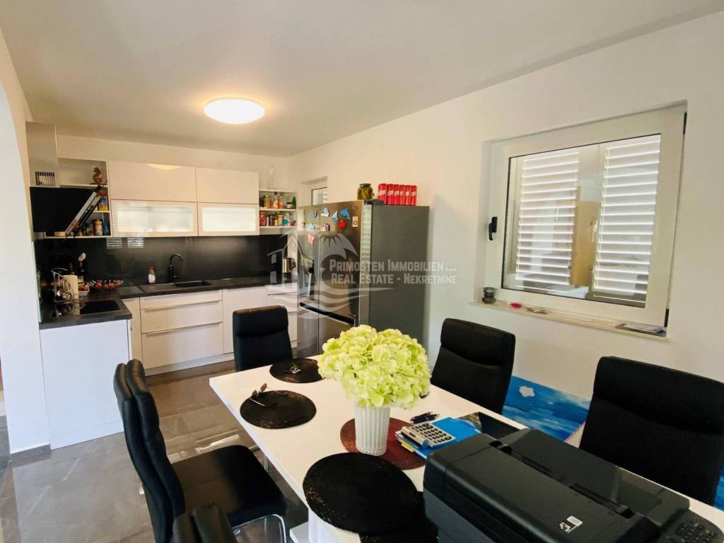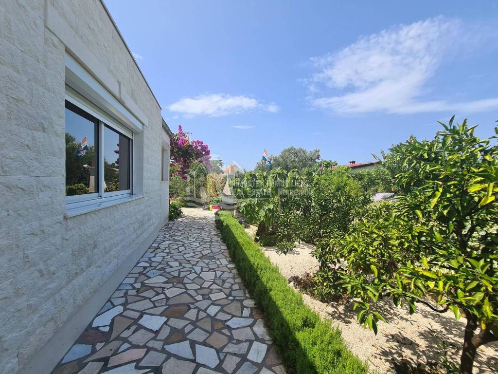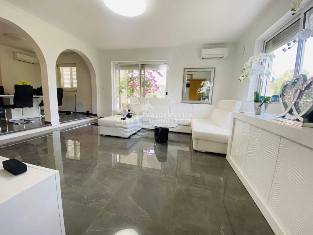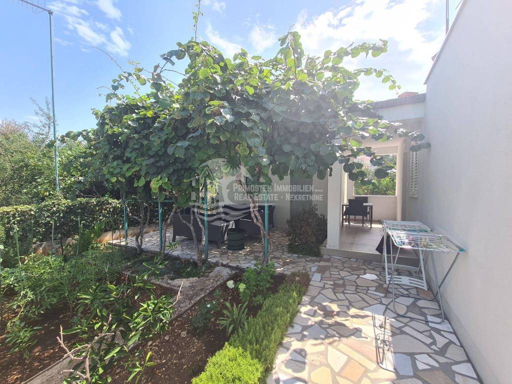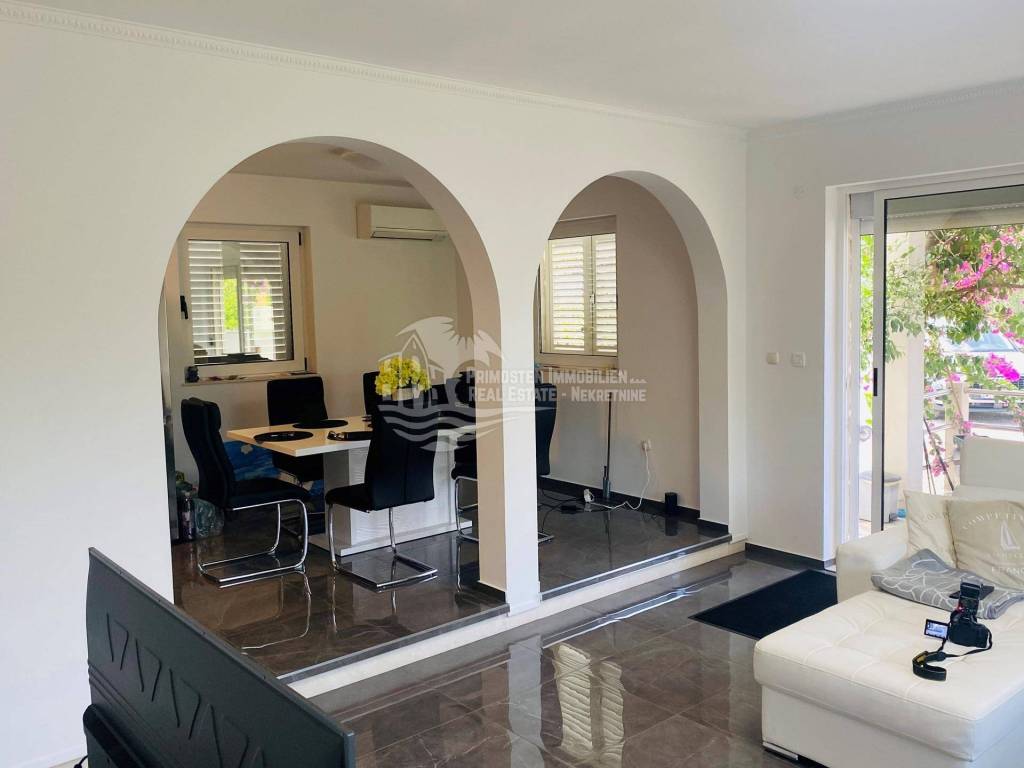 Posredujemo u prodaji šarmantne prizemnice sa predivnim mediteranskim vrtom i okućnicom koja se nalazi u Rogoznici na iznimno dobroj lokaciji. Izgrađena je na parceli od 540 m² te ima ukupnu stambenu površinu 150 m². Okućnica je ograđena, lijepo uređena te uključuje dvorište i mediteranski vrt sa voćkama. Ova kuća ima prizemlje ali je vlasnik predao zahtjev za dizanje još jedne etaže. Na prizemlju se nalazi predsoblje, prostrani dnevni boravak, kuhinja i blagovaonica, 3 spavaće sobe, mali hodnik te dvije kupaonice. Iz dnevnog boravka se može izaći na natkrivenu terasu gdje se nalazi prostor za druženje i roštilj. U sklopu kuće se nalazi još jedan studio apartman i jedna ostava. Studio apartman se sastoji od kuhinje i dnevnog boravka, spavaće sobe i kupaonice. Ispred apartmana se također nalazi prostor za druženje gdje možete uživati u pogledu na predivan mediteranski vrt. Kuća se prodaje u potpunosti namještena, a u kući se nalazi stolarija vrhunske kvalitete, prostorije su klimatizirane, fasadni zidovi su obloženi u kamen, a kuća je kompletno pokrivena videonadzorom. Lokacija ove kuće je iznimno dobra zbog toga što se nalazi 200 m udaljena od kristalno čistog mora, te od mnogobrojnih turističkih sadržaja kao što su restorani, trgovine, šetnice. Zbog lokacije, blizine centra i plaže ova nekretnina predstavlja investiciju za nekoga tko se želi baviti turizmom, ali je idealna i za nekog tko traži savršeno mjesto za odmor.