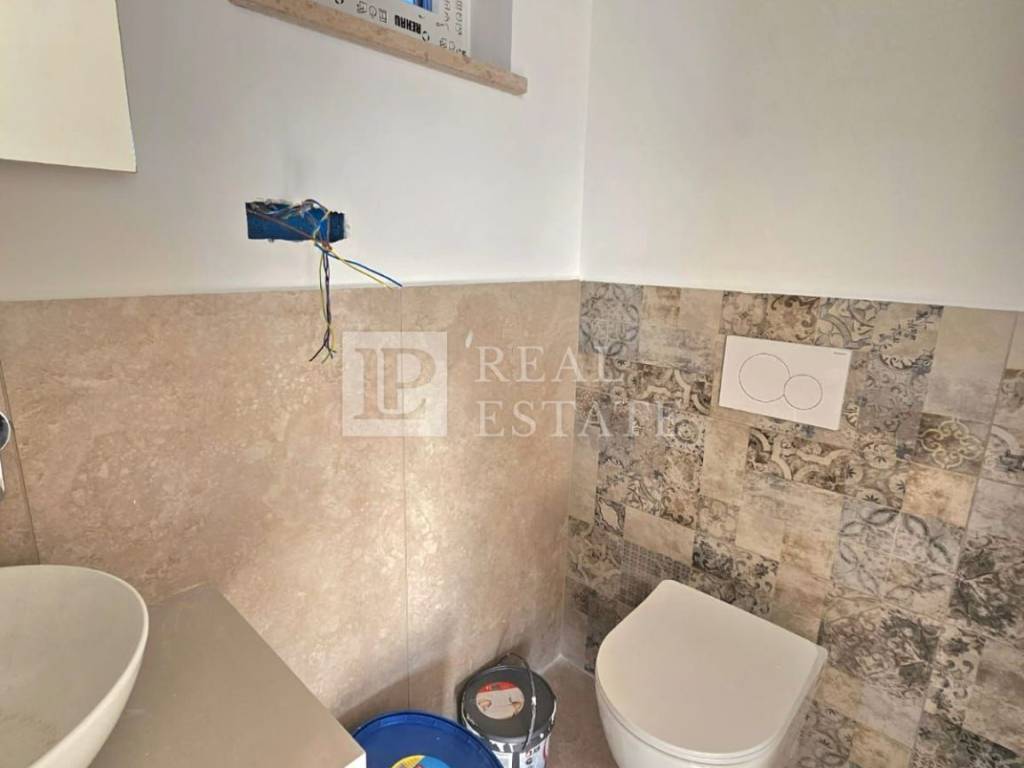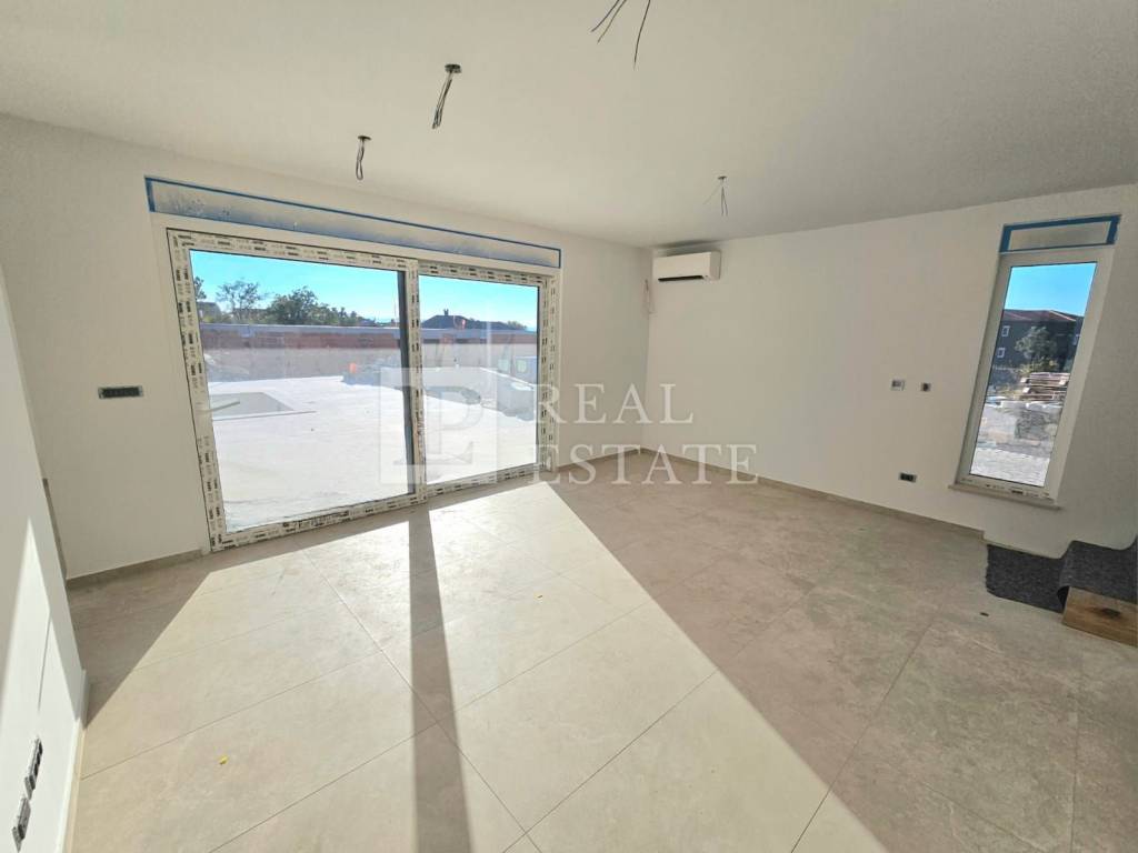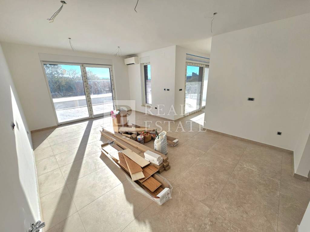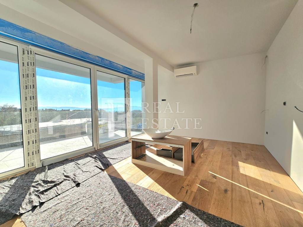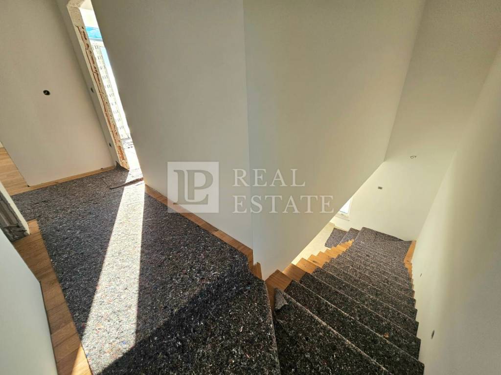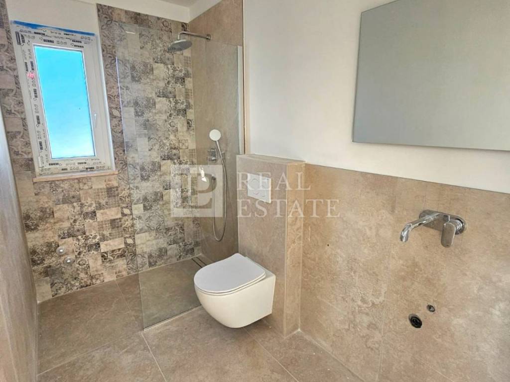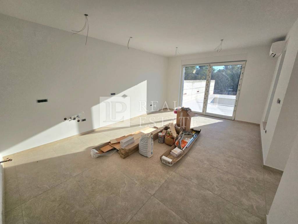 Novogradnja od 151 m2 se prostire na dvije etaže. U prizemlju se nalazi ulazni hodnik, dnevni boravak s blagovaonicom, toalet, stubište te natkrivena i nenatkrivena terasa. Na terase se izlazi iz dnevnog boravka pomoću klizne stijene. Ondje je smješteno i sunčalište te prostrani bazen u kojem je moguće uživati uz otvoreni pogled na more.