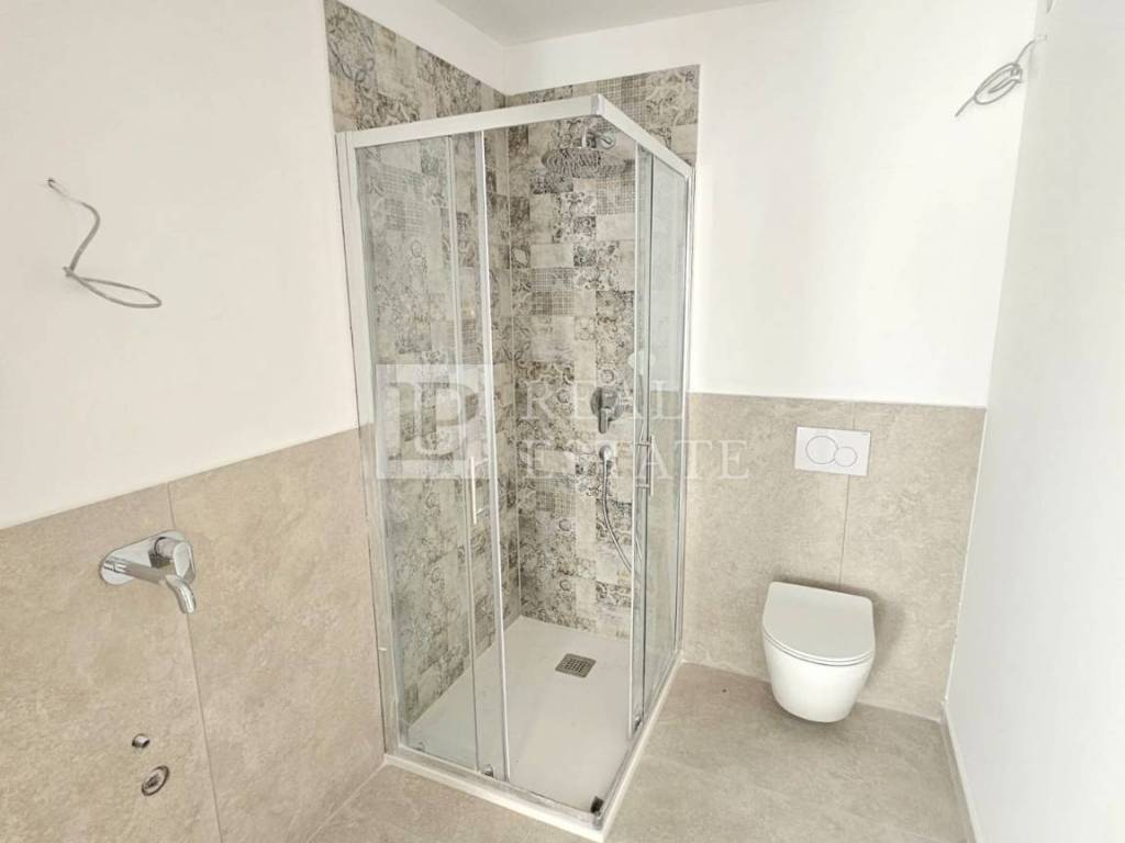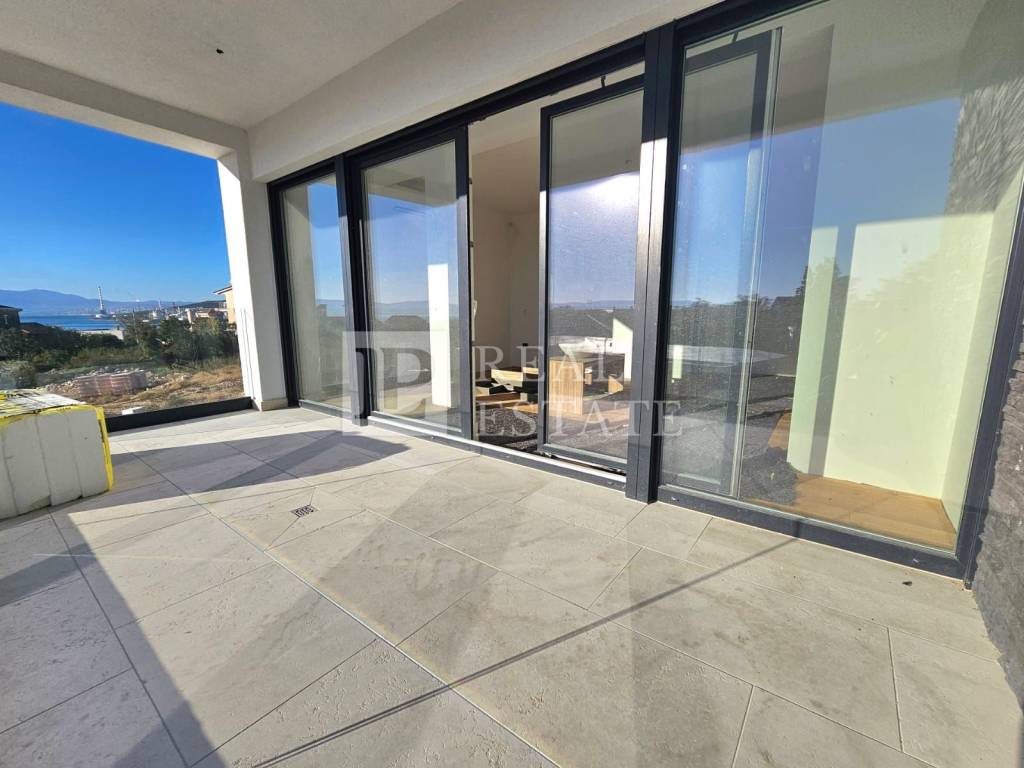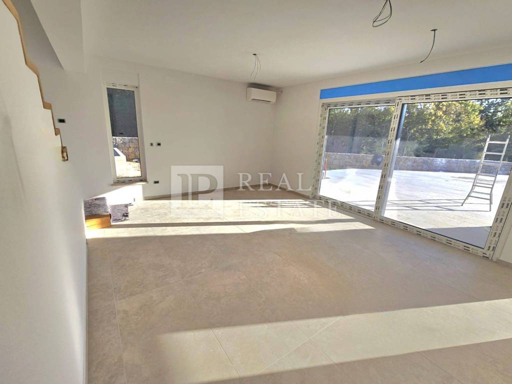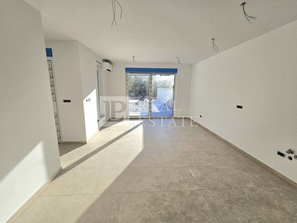 Novogradnja od 151 m2 se prostire na dvije etaže. U prizemlju se nalazi ulazni hodnik, dnevni boravak s blagovaonicom, toalet, stubište te natkrivena i nenatkrivena terasa. Na terase se izlazi iz dnevnog boravka pomoću klizne stijene. Ondje je smješteno i sunčalište te prostrani bazen u kojem je moguće uživati uz otvoreni pogled na more.