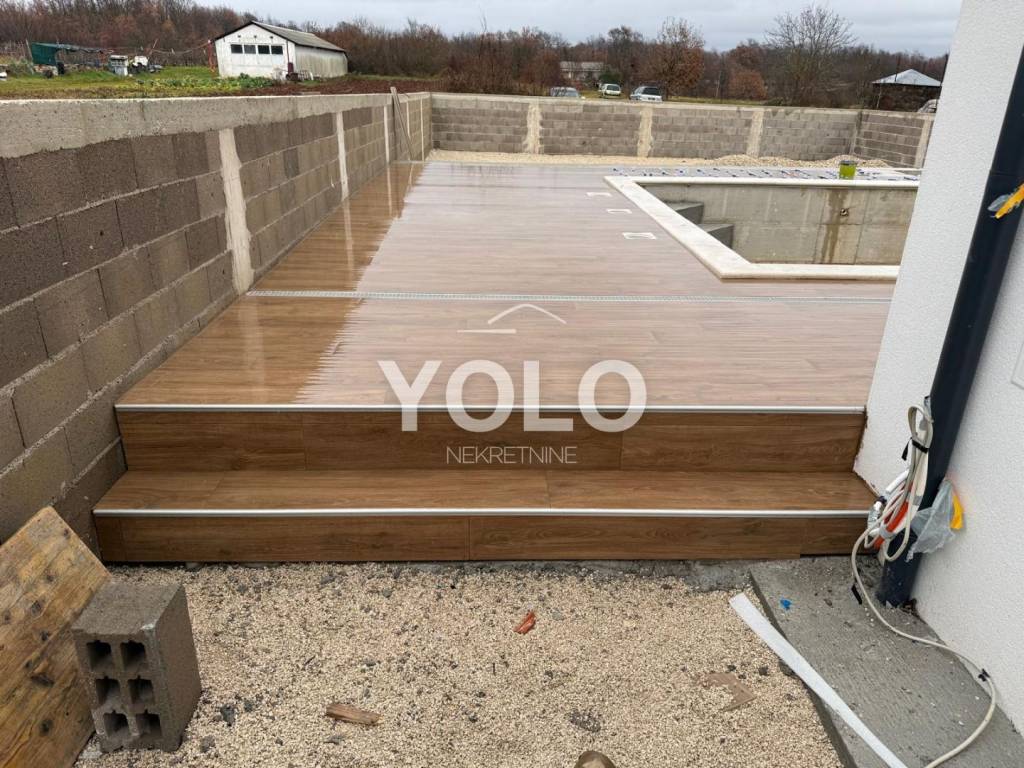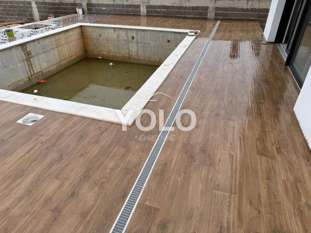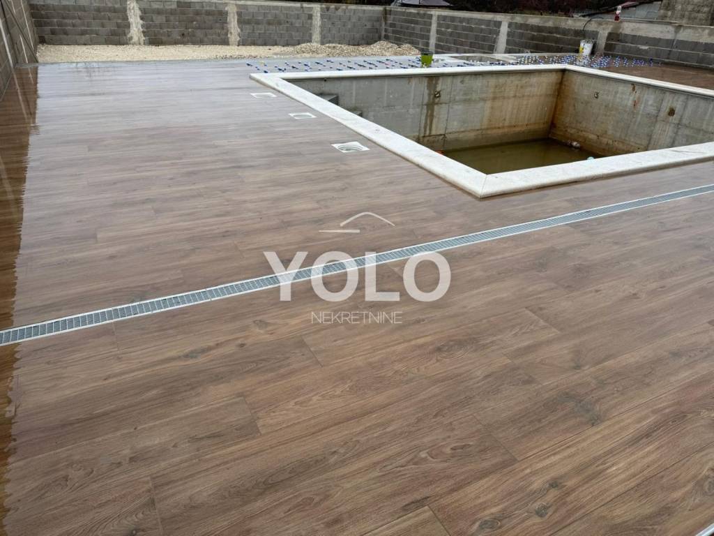 Kuća se sastoji od prizemlja i kata. Tri spavaće sobe ,tri kupaonice, dnevni boravak, kuhinja, blagovaona, garaža i bazen.