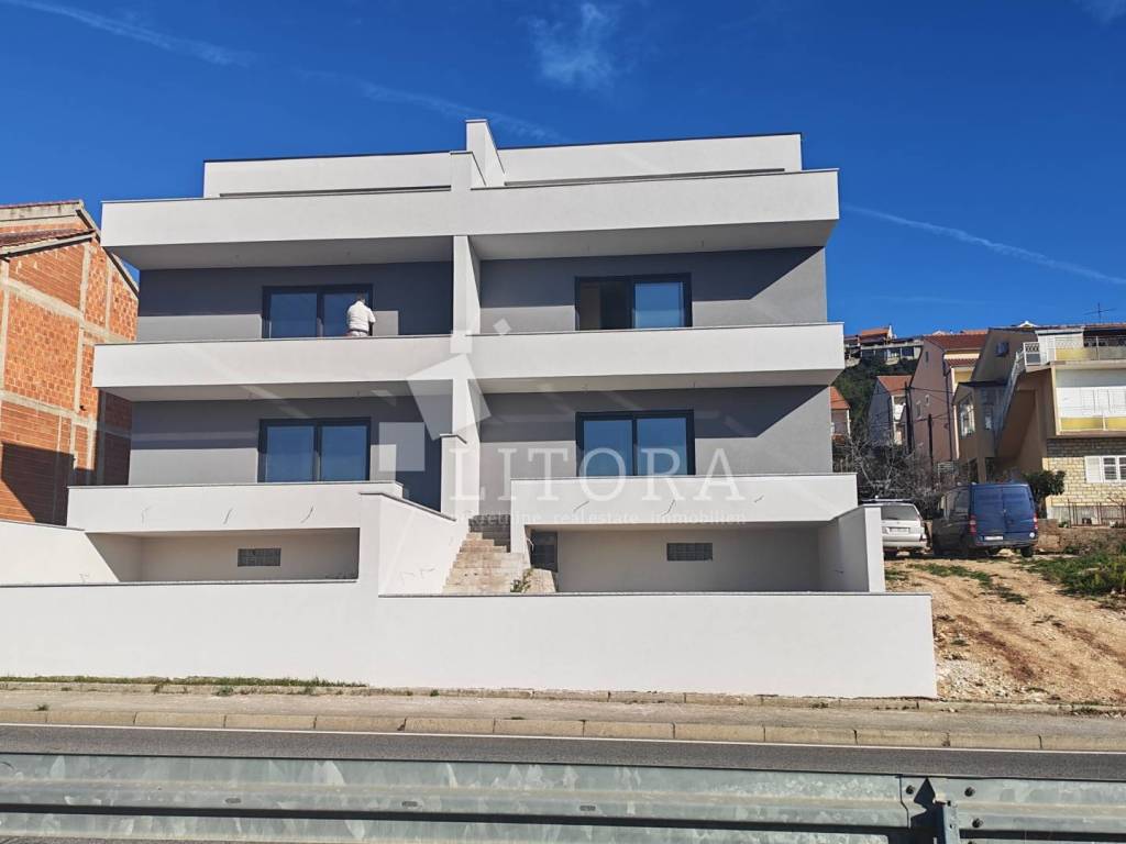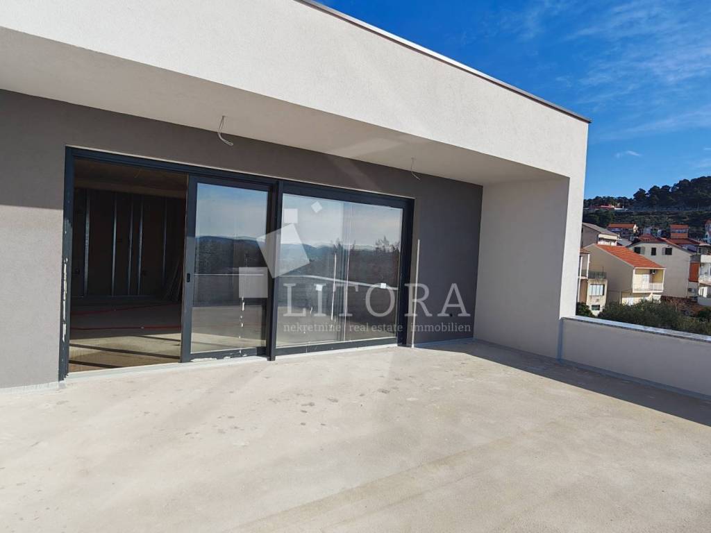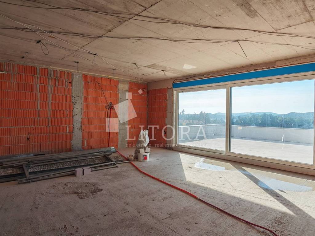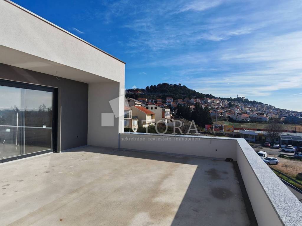 Šibenik – Crnica, novogradnja: moderni dvoetažni komforni stan. U mirnom dijelu Šibenika, u naselju Crnica, u ponudi je moderni i prostrani stan smješten na 1. i 2. katu manje stambene zgrade u izgradnji. Stan je orijentiran na jugozapadnu stranu, što osigurava obilje prirodne svjetlosti tijekom cijelog dana. Stan ima ukupnu površinu od 166,34 m² i sastoji se na 1.katu od hodnika, tri spavaće sobe, 3 kupaonice. Unutarnje stepenice vode na 2. kat na kojem se nalazi WC, te veliki dnevni boravak povezanog s kuhinjom i blagovaonicom, iz kojeg se izlazi na prostranu nenatkrivenu terasu od 39,51 m² – idealnu za opuštanje i boravak na otvorenom. Posebnu vrijednost nekretnine čini dva osigurana parkirna mjesta. Zgrada je trenutno u izgradnji, a planirani završetak radova i useljenje predviđeni su za proljeće 2026. godine. Lokacija je atraktivna i odlično povezana – u blizini svih javnih sadržaja. Od centra grada udaljena je 1,8 km, dok je popularna gradska plaža „Banj“ na svega 800 m.