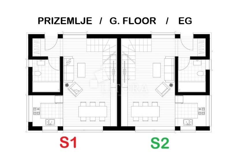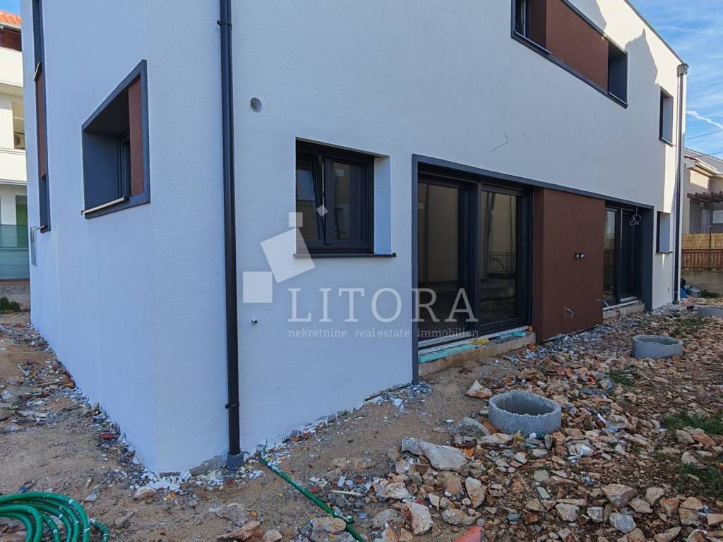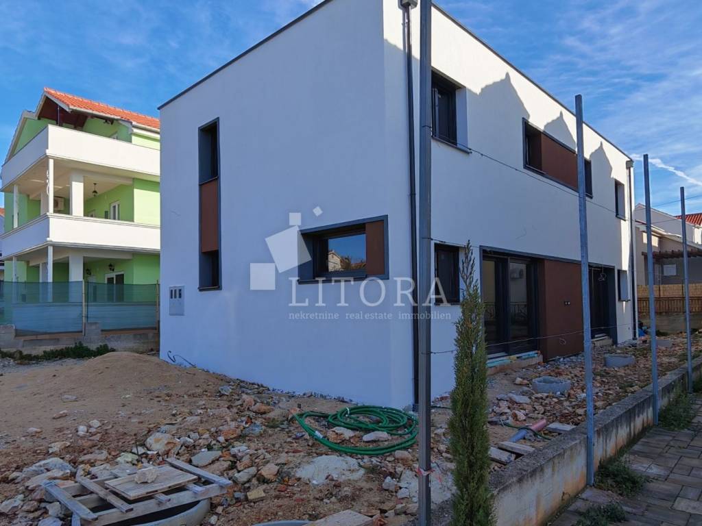 Vodice, 750 m od plaže Vruje – novogradnja. Obiteljska kuća, dvojni objekt, ukupne stambene površine 77,24 m², orijentirana na jugozapad. Kuća se sastoji od prizemlja i prvog kata, s mogućim izlazom na krovnu terasu. Prizemlje se sastoji od ulaza, kupaonice, kuhinje s blagovaonicom te dnevnog boravka s izlazom na terasu i dvorište. Unutarnjim stubištem dolazi se na kat koji se sastoji od hodnika, tri spavaće sobe, kupaonice te izlaza na krovnu terasu. Nekretnini pripada vrt površine cca 30 m² te dva parkirna mjesta. Krovna terasa se može dodatno urediti; postavljene su instalacije za solarnu elektranu i jacuzzi. Udaljenost od plaže iznosi 750 m, a od centra grada 1.100 m. Nekretnina je u završnoj fazi gradnje, a useljenje je predviđeno do ljeta 2026. godine.