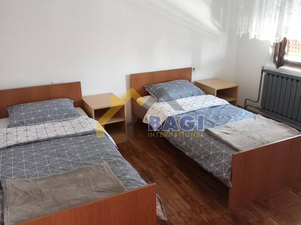 Iznajmljuje kuća u Petrinji za smještaj radnika ukupune površine 100m2., dvije etaže, trenutno je samo gornji u funkciji i namjenjen je za 5 radnika. Gornja etaža se sastoji od prostora za blagovanje, 3 sobe. Parking osiguran.
